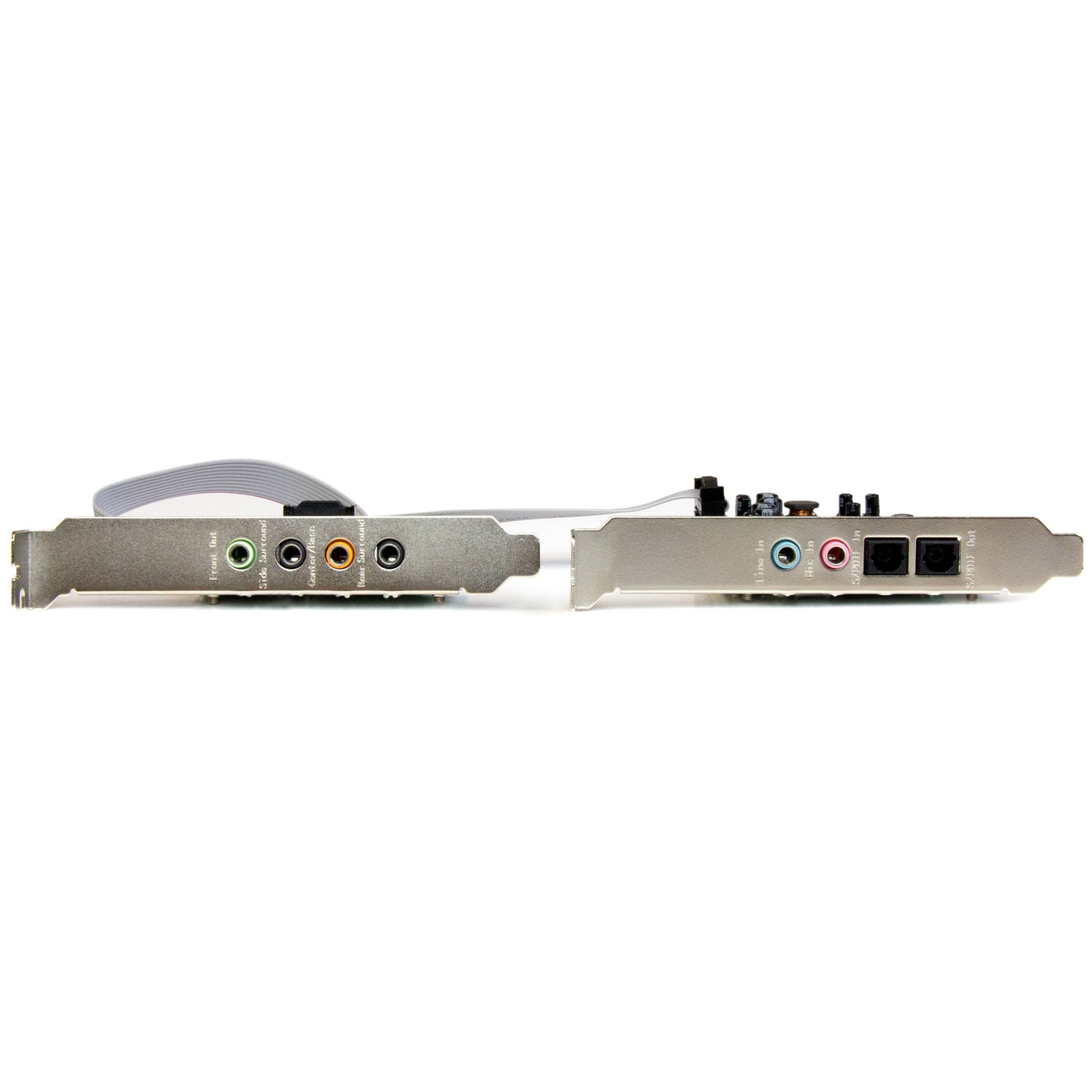 Add Digital Optical Surround Sound To Your Computer Through Pcie With This 71-Channel Pcie Sound Card, You Can Create A High-Quality Home Theatre Sound System It Offers Spdif Input And Output Ports Which Deliver Crystal-Clear Digital Optical Audio, For The Ultimate Listening Experienceversatile Performance The Versatile Sound Card Can Be Used With A Variety Of Audio Devices And With Spdif Digital Optical Or 35Mm Analog Output, You Dont Need To Worry About The Connection Types On Your Devices You Can Output Digital Audio To Your Optical Receiver Or Dac, Or Analog Audio To Your Sound System With Up To 24-Bit And 192Khz Playback And Recording, This 71 Surround Sound Adapter Card Delivers High-Definition Audio For Superb Sound Qualitysimple Installation Unlike Typical Sound Cards, This Card Is Designed To Fit In Low-Profile Computers, Making It Ideal For Home Theatre Personal Computers (Htpc) It Spans The Multiple Ports Across A Main Card Plus An Innovative Separate Header Bracket The Card Is Configured With Standard Profile Brackets And Includes Low-Profile (Half-Height) Brackets The 71 Channel Surround Sound Card Is Easy To Install Its Perfect For Anyone Looking For A Simple Solution To Upgrade Their Listening Experience, Such As Music Enthusiasts Or Mixing Professionalsmultiple Input Options For Added Scalability, You Can Quickly Connect A Microphone Or Other Recording Devices To Your Computer Through Two 35Mm Stereo Or Spdif Digital Audio Input Jacks The Pexsound7Ch Is Backed By A Startechcom 2-Year Warranty And Free Lifetime Technical Support