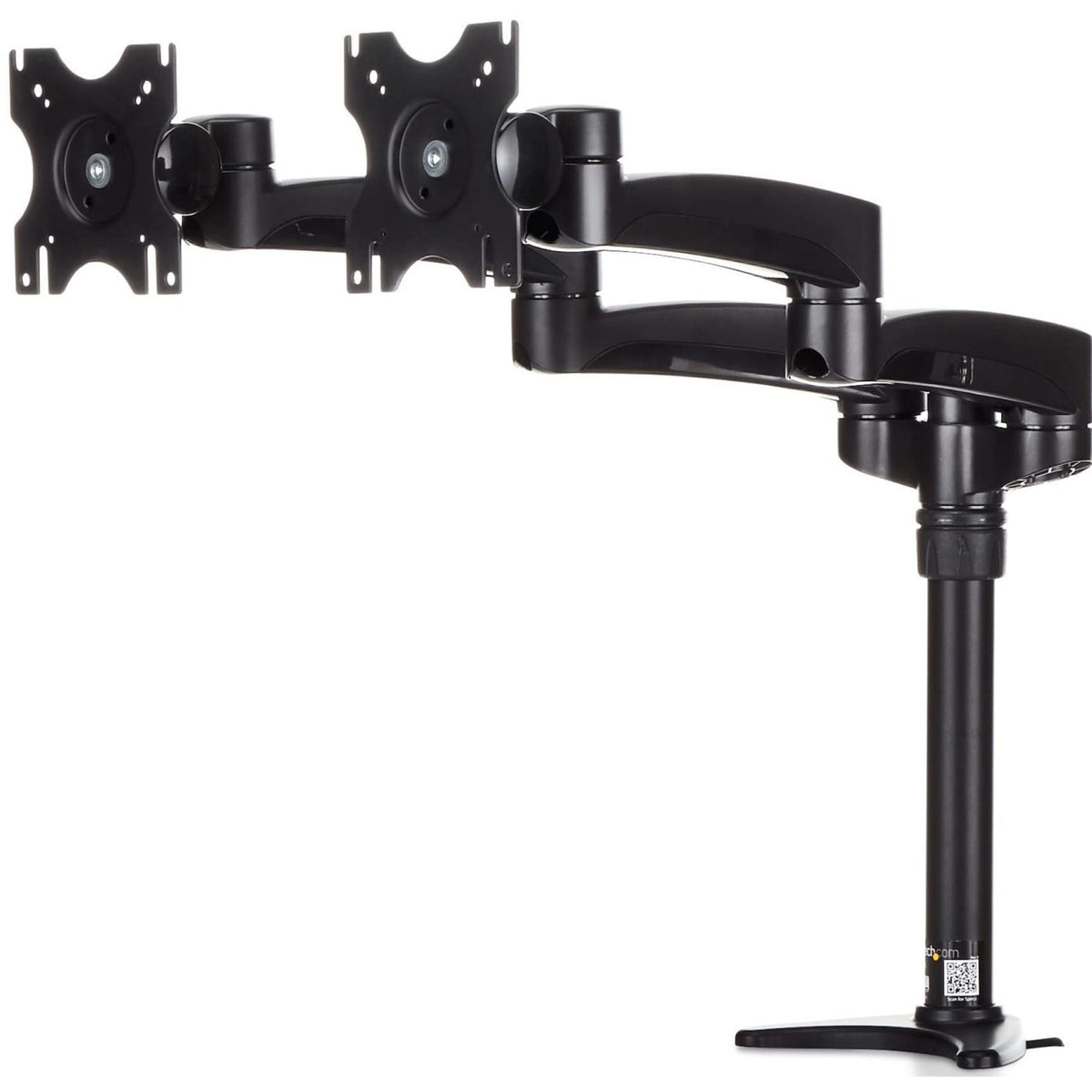 Reduce Desktop Clutter And Facilitate Multitasking By Using This Startech Armdual Articulating Dual-Monitor Arm. Raise Monitors To The Perfect Viewing Height And Angle With This Monitor Arm. This Arm Supports Up To Two 24-Inch Monitors And Enables Full Screen Rotation, 90-Degree Tilt, And Two Points Of Arm Adjustment To Help Achieve The Optimal Viewing Angle For Any Task. This Startech Armdual Dual Monitor Arm Can Be Clamped To Surfaces Up To 3.75 Inches Thick, Transforming Almost Any Workstation. Raise Your Monitor To A Comfortable Viewing Height With This Monitor Arm. Supports Up To 24 Monitors For Versatile Use. Made Of Plastic For Durability. -90-To-90-Degree Tilt, 360-Degree Pan, And 360-Degree Rotation Adjustment Options Enable Optimal Viewing. Securely Holds Up To 30 Lbs. To Fit Most Monitors. Compatible With The Standard Vesa Mounting Patterns: 100 X 100, 75 X 75. Comes In Black Finish. 2-Year Manufacturer Limited Warranty.