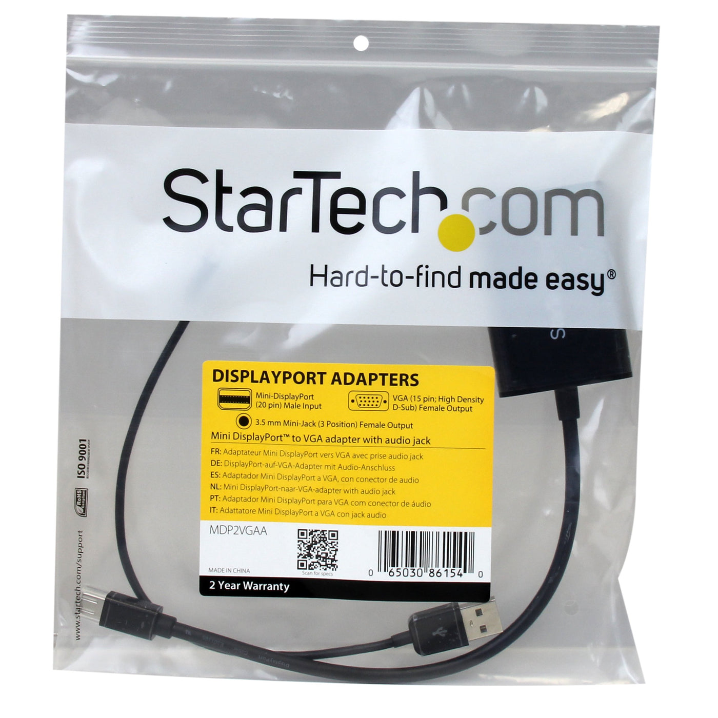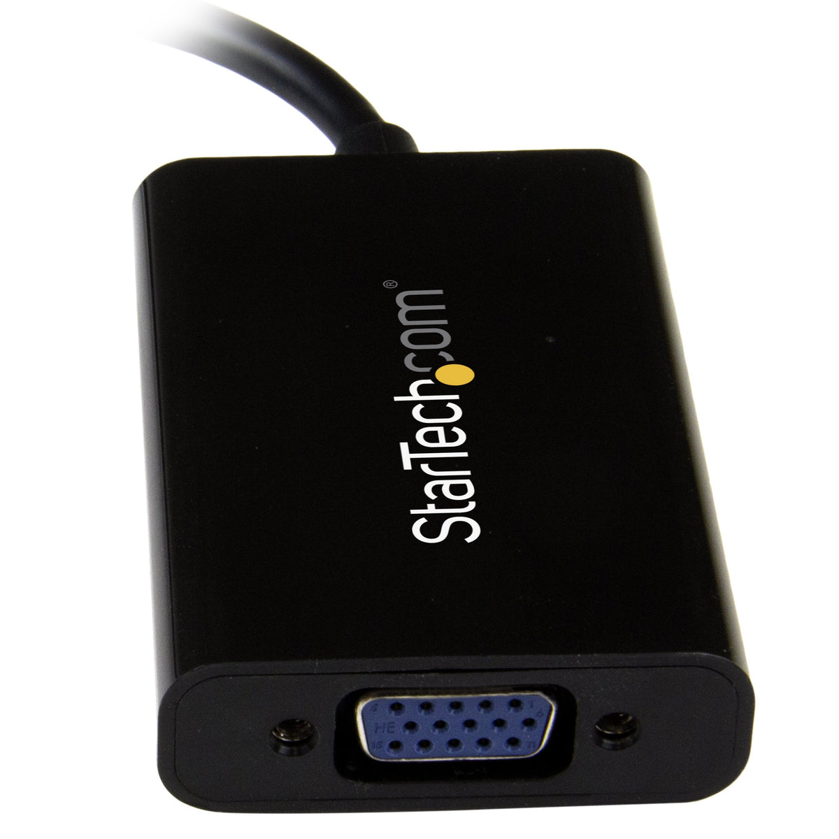 The Startech Mini Displayport To Vga Adapter Enables You To Connect Your Mini Displayport Microsoft Surface Pro 3 Tablet Or Macbook To An Vga Display Or Projector This Startech Mini Displayport To Vga Adapter Features A 35 Mm Output Which Allows You The Option To Share The Audio Directly From Your Mini Displayport It Supports Video Resolutions Up To 1920 X 1200 Or 1080P, So You Can Use Your Existing Vga Display While Maintaining High-Definition Video Quality Its Small Foot Print And Lightweight Design Fits Nicely Into Any Carrying Case That Lets You Carry Wherever You Go The Adapter Does Not Require Software Or Drivers That Save You Time And Hassle When You Need To Make A Quick Connection Adapter Connects Your Mac Or Pc To A Vga Display And A Discrete 35 Mm Audio Output Provides 20 Pin Mini Displayport Male Input To 15 Pin Vga High Density D-Sub Female Output35 Mm Mini-Jack 3 Position Female Output Connectors Maximum Portability With A Small Foot Print And Lightweight Design Dimensions: 12L X 17W X 06H Features Active Converter Supports Projector, Monitor, Speaker, Tablet, Macbook Air Comes In Black Color Supports 1920 X 12001080P Output Analogdigital Resolution Usb-Powered Provides 2-Channel Stereo, 1920 X 1200 1080P Maximum Analog Resolutions And 1920 X 1200 1080P Maximum Digital Resolutions Group Your Vga And Audio Ports Together, To Ensure They Are All Accessible When You Need Them Substitute A Damaged Or Blocked Audio Port By Connecting Your Audio Directly Through The Adapter Temperature: 0- 70 Deg C Operating,-10- 55 Deg C Storage, Humidity: 40- 50% Rh Includes Mini Displayport To Vga Adapter, 025 M Micro Usb Cable Meets Fc, Ce, Rohs Certification And Standards Weight: 14 Oz Comes With 2 Years Warranty