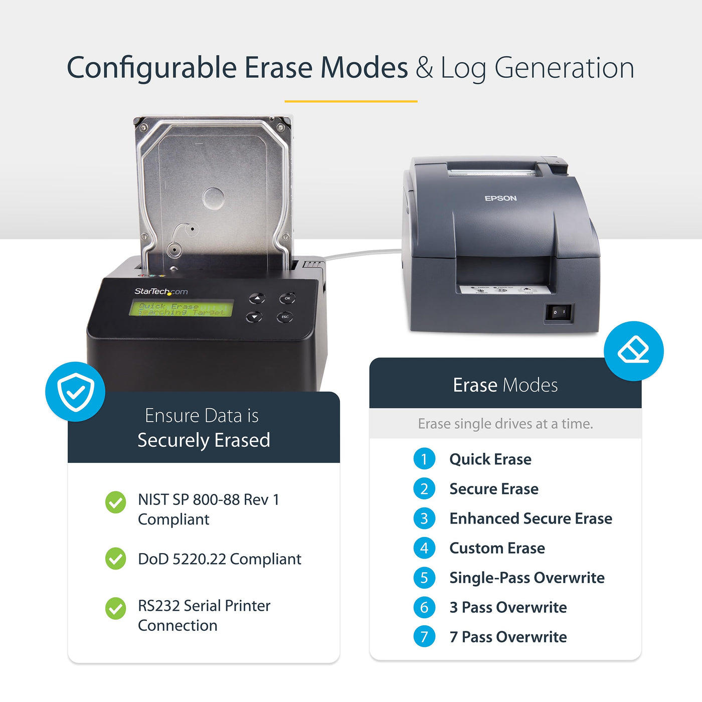 Startech.Com Single Bay Ssd/Hdd Hard Drive Eraser, 2.5/3.5'' Sata, Hostless Standalone Secure Erase, Disk Sanitizer, Hardware Wi