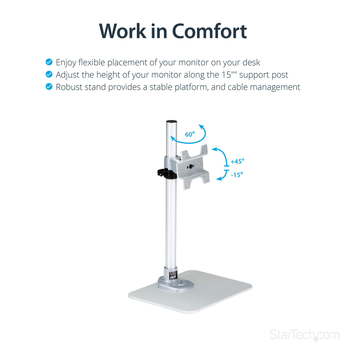 The Adjustable Monitor Stand Lets You Mount A Display On Your Desk, With Tilt, Pivot And Height Adjustments For Perfect Positioning This Taa Compliant Product Adheres To The Requirements Of The Us Federal Trade Agreements Act (Taa), Allowing Government Gsa Schedule Purchases The Monitor Stand Holds Most Common Displays With Ease, Supporting Monitors From 12 - 30 Up To A Maximum Weight Capacity Of 30Lbs (14Kg) For Added Flexibility, The Included Hardware Can Be Used To Mount Your Apple Imac Or Apple Cinema Display Adjustable Monitor Stand With Several Position Viewing Angle Adjustments Supports Displays From 12 To 30 (30Lbs 14Kg Capacity) Taa Compliant For Gsa Schedule Purchases Includes Hardware For Mounting An Imac Or Apple Cinema Display Mounting Bracket Pans 60Deg Around The Support Post Landscape-To-Portrait Screen Rotationthe Desktop Monitor Stand Features A 15In (380Mm) Tall Support Post, For A Much Greater Range Of Height Adjustments Than Typical Monitor Stands Can Provide For Viewing Longer Pages Or Blocks Of Code Without Scrolling, The Lcd Stand Also Supports Landscape To Portrait Display Rotation Adjust Your Display Height, Position And Viewing Angles Easily To Create An Ergonomic Work Environment, With The Added Benefit Of Reclaiming Valuable Workspace On Your Desk By Mounting On A Support Post Above The Desk Surface The Armpivstnd Is Backed By A Startech 2-Year Warranty And Free, Lifetime Technical Sup