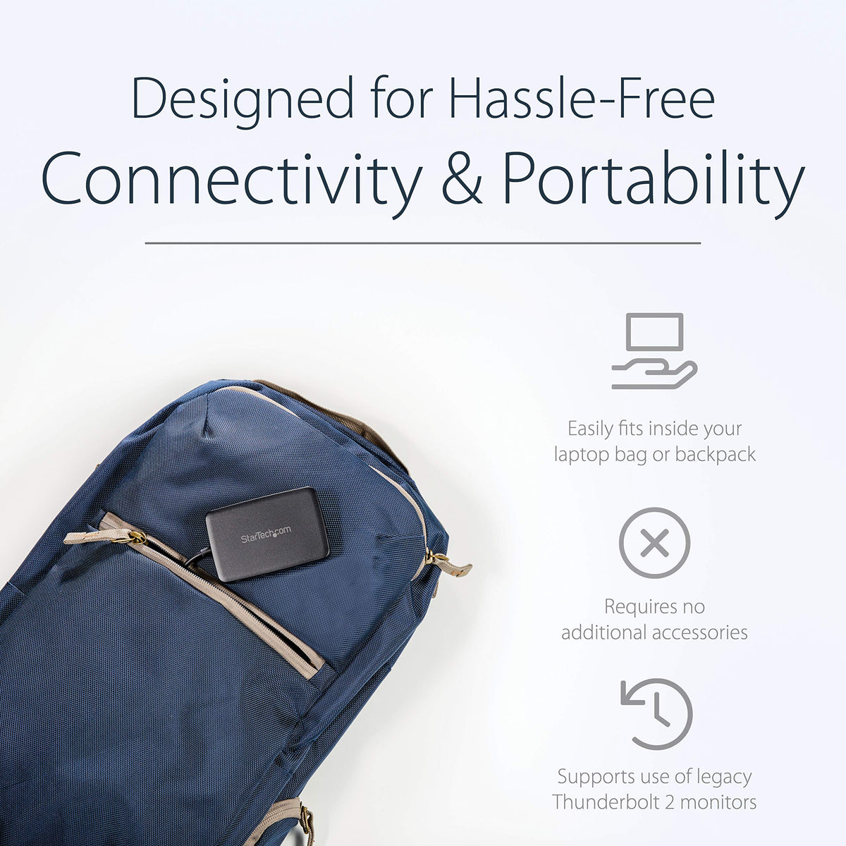 Q: What devices are compatible with the StarTech Thunderbolt 3 to Thunderbolt 2 adapter?A: The StarTech Thunderbolt 3 to Thunderbolt 2 adapter is compatible with Thunderbolt 3 laptops such as MacBook Air, MacBook Pro, Dell XPS 13 & 15, and HP EliteBook. It connects older Thunderbolt 2 and Thunderbolt 1 devices to these newer laptops.