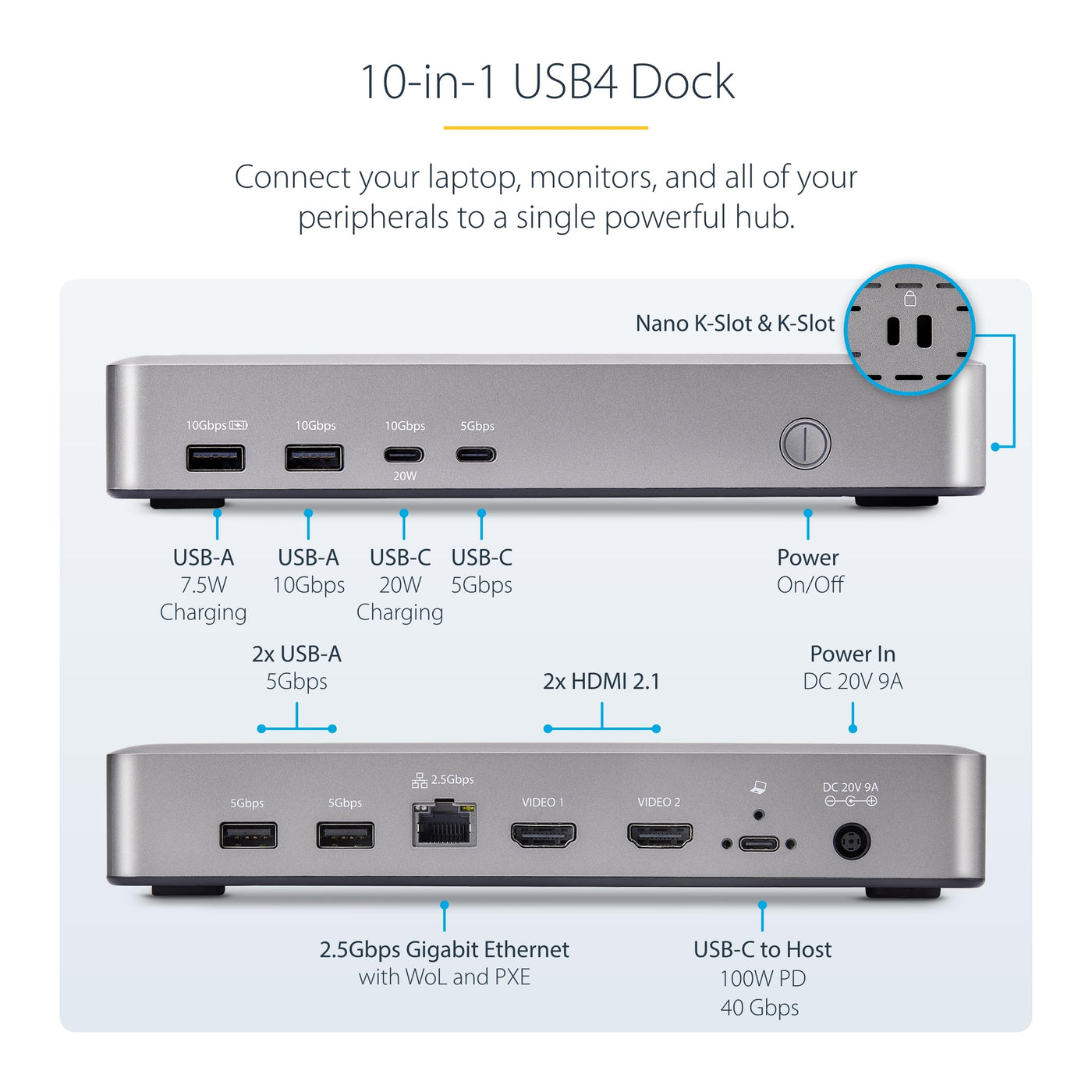 Startech.Com Usb C Docking Station (10 In 1, Usb4), Up To 100W Charging For Laptop, 40Gbps Data Transfer, 2.5Gb Ethernet, Single