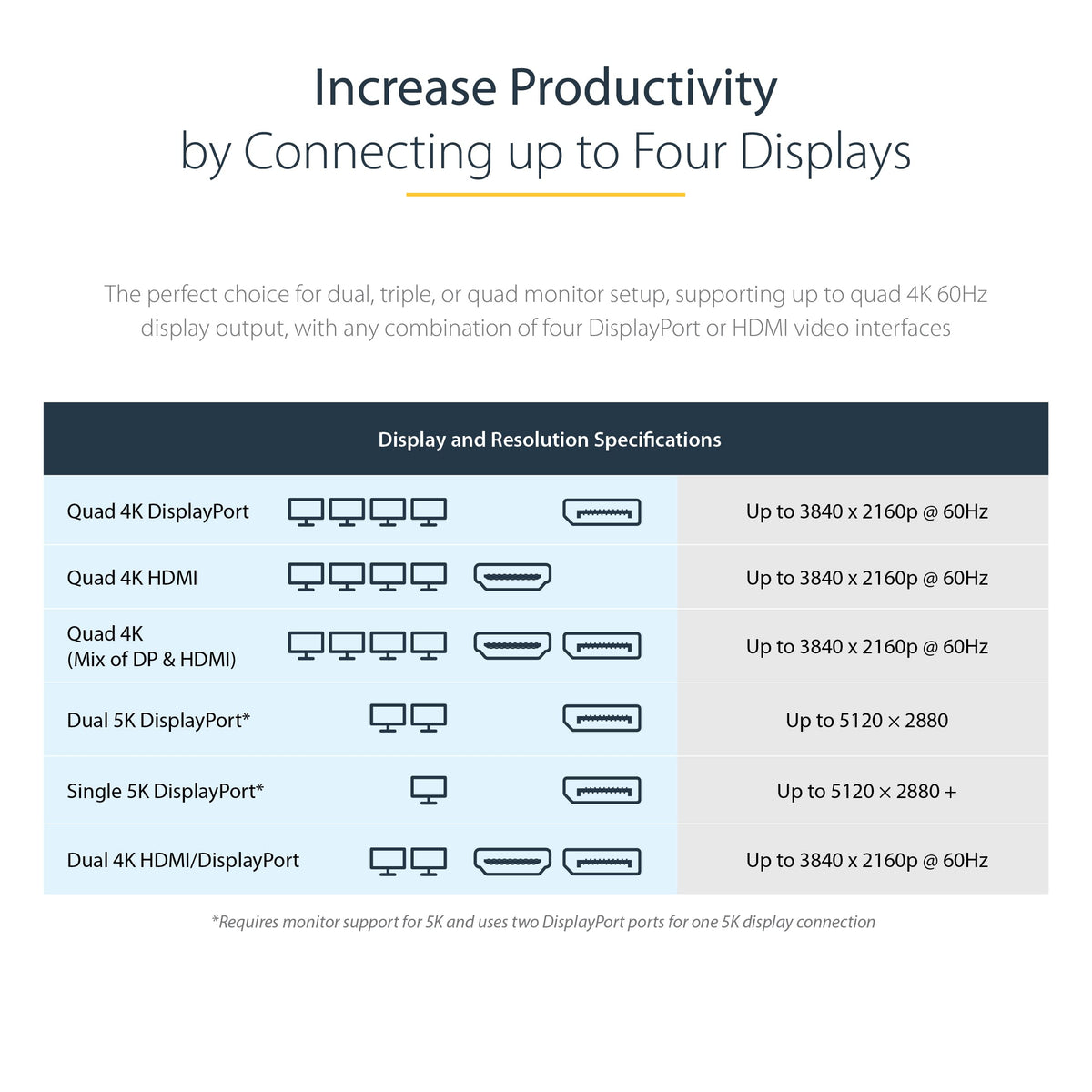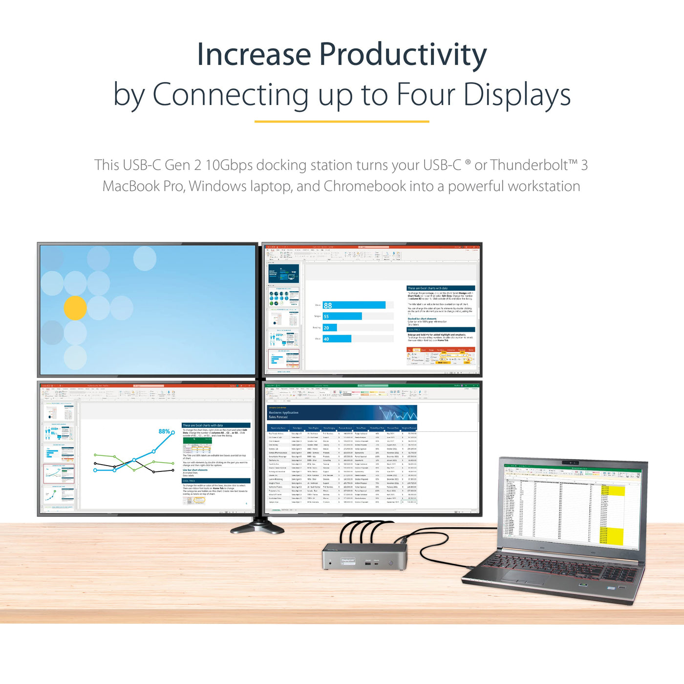 Startech.Com Usb-C Quad Monitor Docking Station For Macbook Pro/Air M1 M2 M3 M4 & Windows, Universal 4K 60Hz Hdmi Dp Dock, Thund