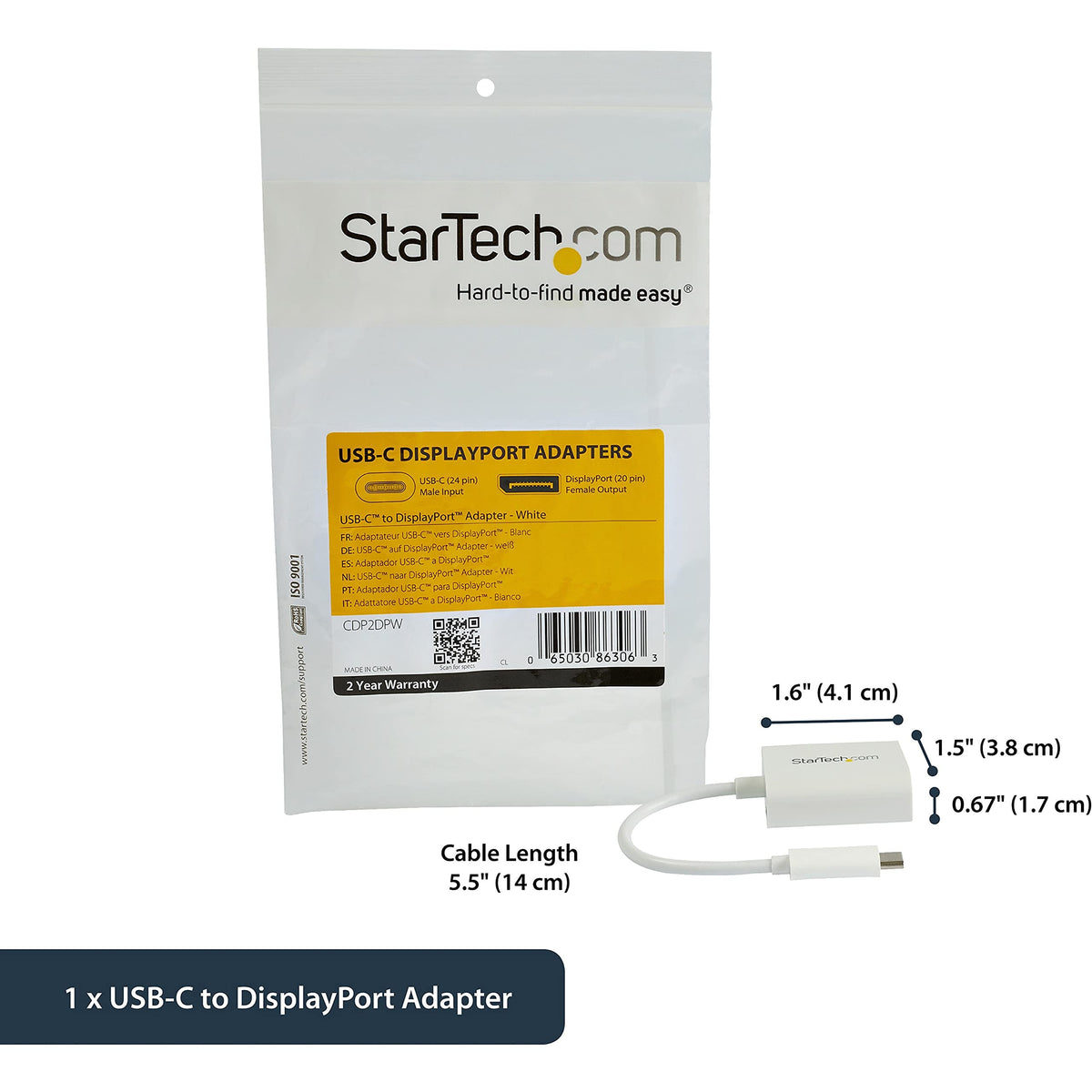Q: Is there a warranty for the StarTech.com USB C to DisplayPort adapter?A: Yes, this adapter is backed by a three-year warranty from StarTech. It ensures reliability and support in case of any manufacturing defects.