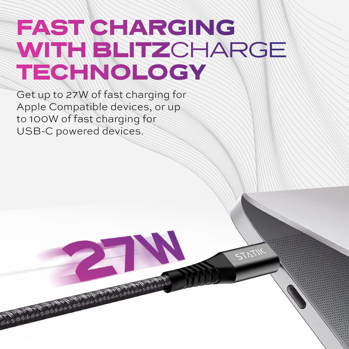 Statik Durabraid 27W Apple Iphone Charger Usb C For Rapid Data Transfer, Apple Usb C Cable W Durable Nylon Braided, Apple Fast C