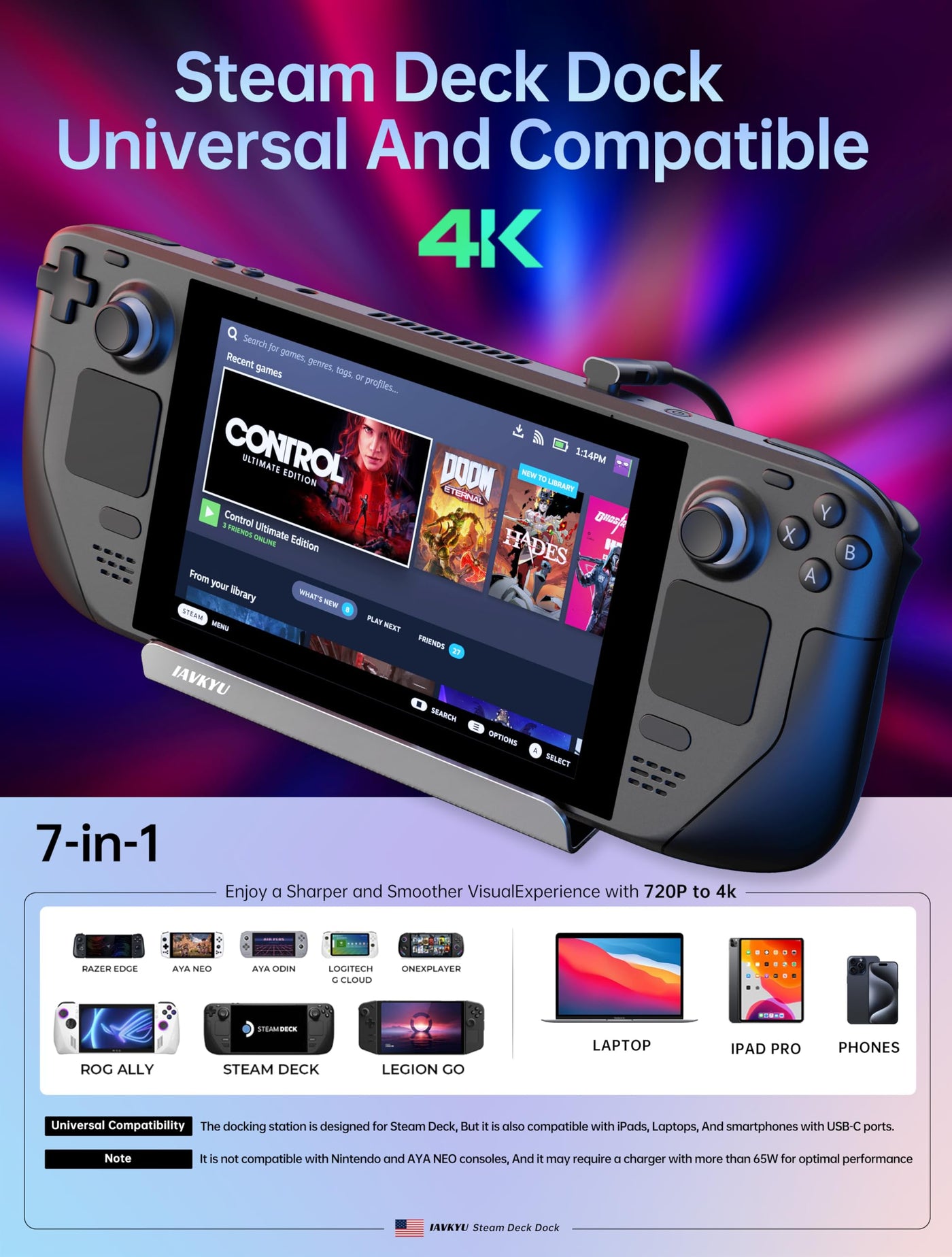 Steam Deck Dock, Stream Deck Dock Compatible With Valave Steam Deck/Rog Alloy, Steam Deck Docking Station(7 In 1) With 4K@60Hz H