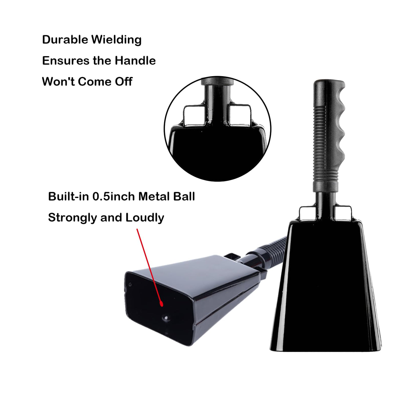 Steel Cowbell With Handle 8 Inch Cow Bells Noise Makers, 2 Pack Large Cowbells For Sporting Events, Hand Percussion Cowbells Che