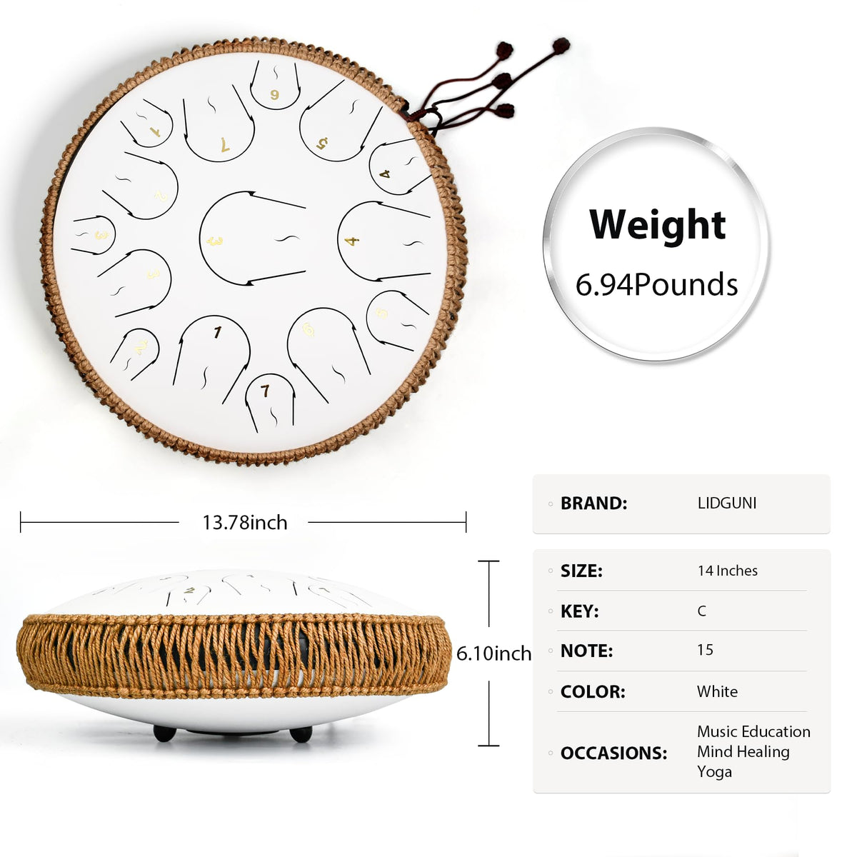 Steel Tongue Drum, 14 Inch 15 Note Hand Pan Drum, Tongue Drum Instrument With Music Book, Steel Handpan Drum Mallets And Carry B