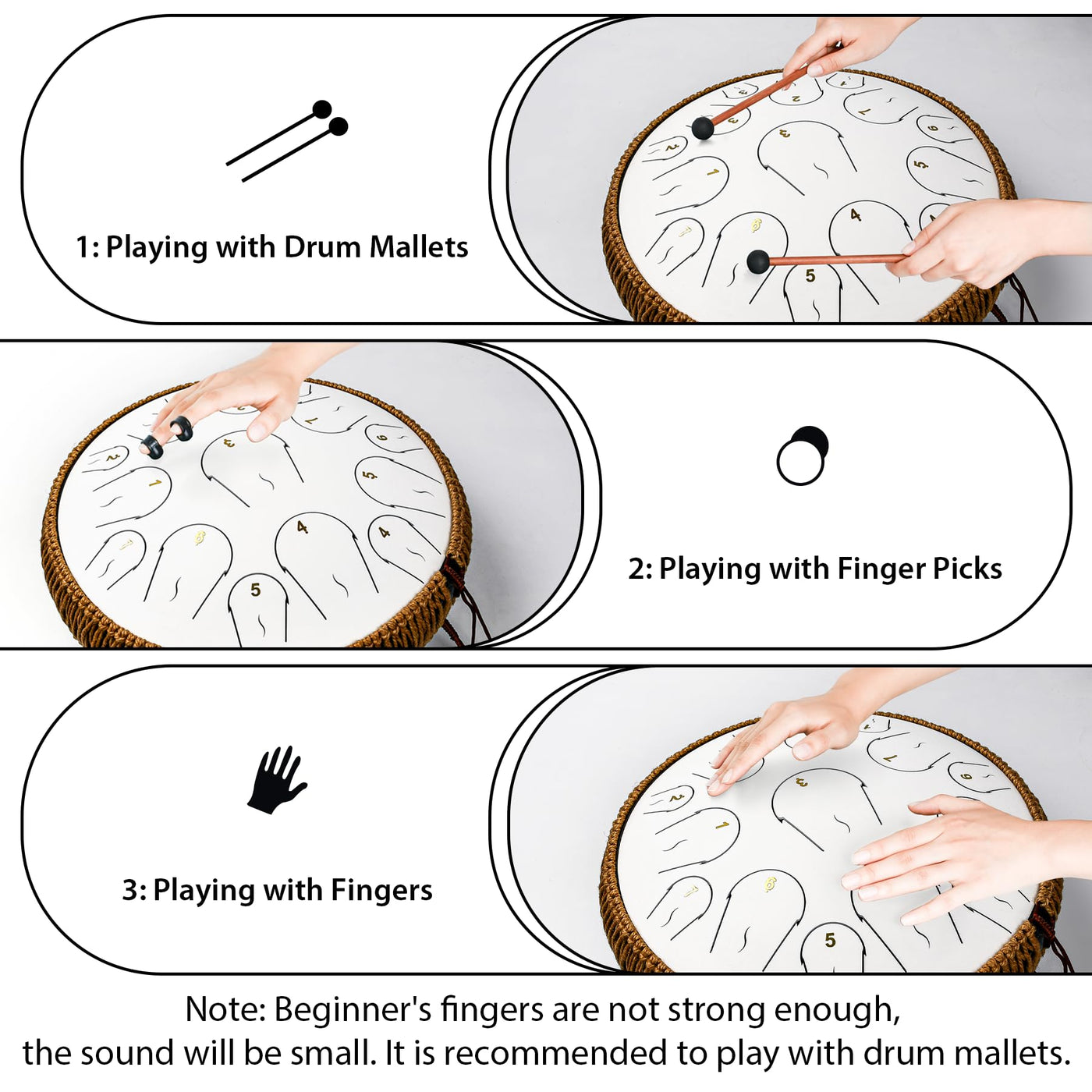 The Steel Tongue Drum Is The&Nbsp;Ultimate Instrument For Exploring Soft Tones And Harmonic Melodies!&Nbsp; It Is Made Of High Quality Steel And Produces Mesmerizing Soft Tones, Perfect For Meditation, Yoga, Music Therapy And Musical Expression.&Nbsp; In Addition To This, The Drum Comes With Songbook, Drumsticks And Carry Bag.&Nbsp; Whether You'Re A Musician Or A Beginner, This Drum Is An Must-Have For Transporting Yourself Into A World Of Peace And Harmony.