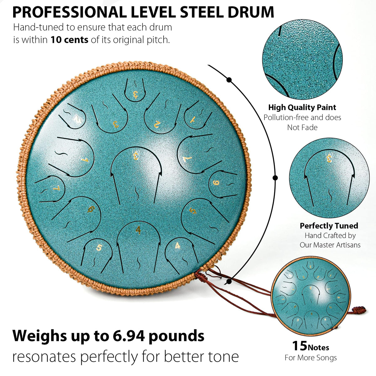 The Steel Tongue Drum Is The&Nbsp;Ultimate Instrument For Exploring Soft Tones And Harmonic Melodies!&Nbsp; It Is Made Of High Quality Steel And Produces Mesmerizing Soft Tones, Perfect For Meditation, Yoga, Music Therapy And Musical Expression.&Nbsp; In Addition To This, The Drum Comes With Songbook, Drumsticks And Carry Bag.&Nbsp; Whether You'Re A Musician Or A Beginner, This Drum Is An Must-Have For Transporting Yourself Into A World Of Peace And Harmony.