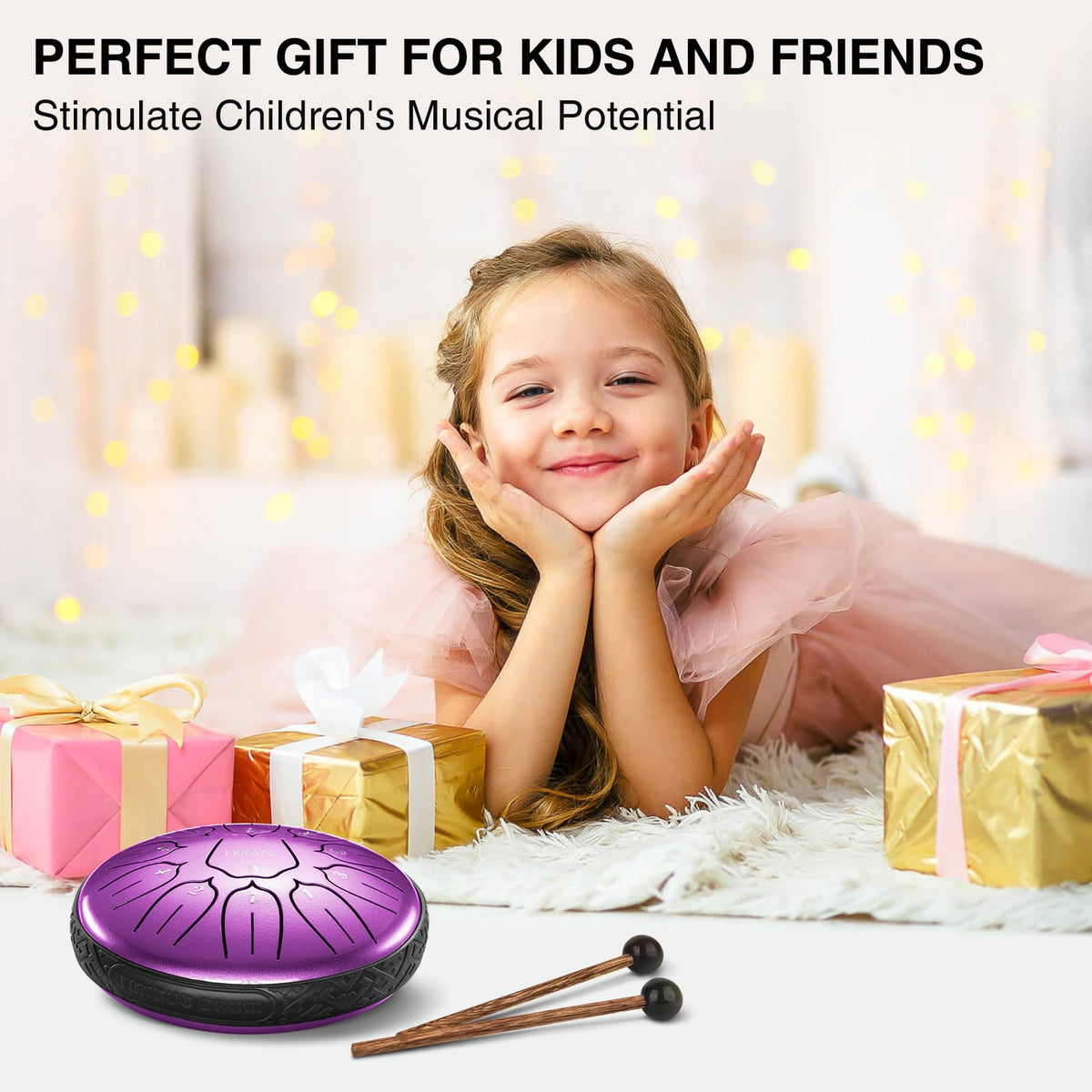 Steel Tongue Drum 6 Inch 11 Notes, Lekato Steel Drum D Major Beginner Hand Drum Percussion For Musical Education Zen Meditation