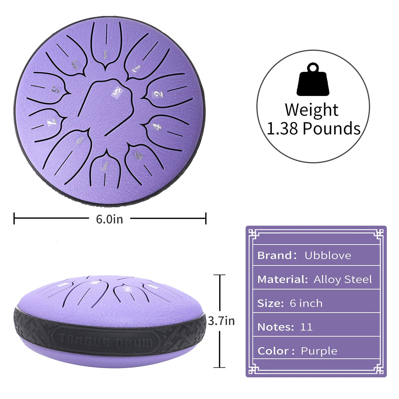 Strongmethods Of Enjoying Well:Strongcomes With A Music Book And Carry Bagplaying It With Hands Demands More Accurate Tapping Position,Nbsptherefore Using Mallets Is Your First Choice, The Sound Under The Mallets Will Be More Penetrating,Nbsppurer And More Etherealstrongintroduction:Strongthis Steel-Titanium Alloy Tongue Drum Is Handmade By Professional Craftsmenalthough It Is Simple In Structure, Its Voice Is Very Ethereal,Can Be Used In Yogasince The Simple Design, Even Beginners Can Easily Master And Play Wonderful Musicit Is Very Suitable For Childrens Music Education,Easy Play Come Make Them Love Music In Short Timestrongspecification:Strongname: Steel Tongue Drum (Or Handpan Drum)Notes Sizes: 11 Notes 6 Inchescolor: Purple Green (Optional)Material: Alloy Steelitem Size: 152 94Cm 598 37Initem Weight: 626G 138Lbpackage Size: 235 225 145Cm 925 886 571Inpackage Weight: 1080G 238Lbstrongpackage List:Strong1 Steel Tongue Drum1 Drum Bag1 Shoulder Strap2 Drum Mallets1 Drum Mallets Bag1 Music Scorenbsp