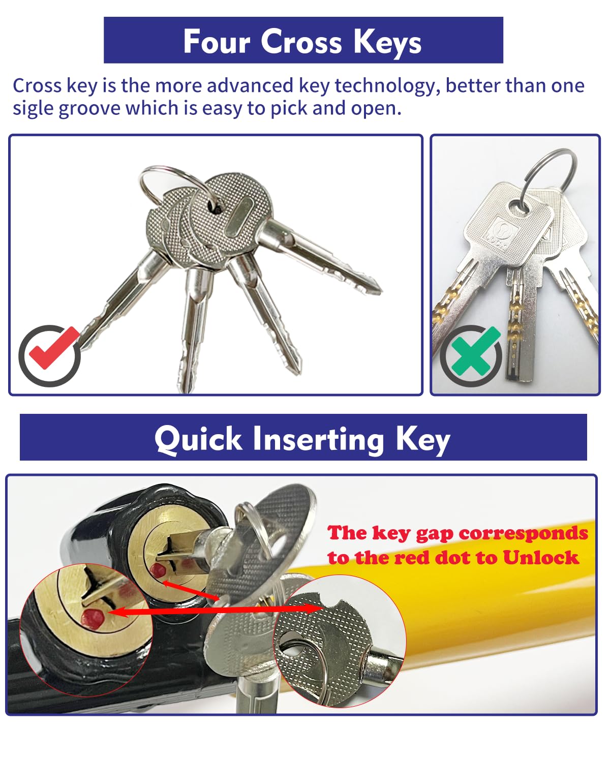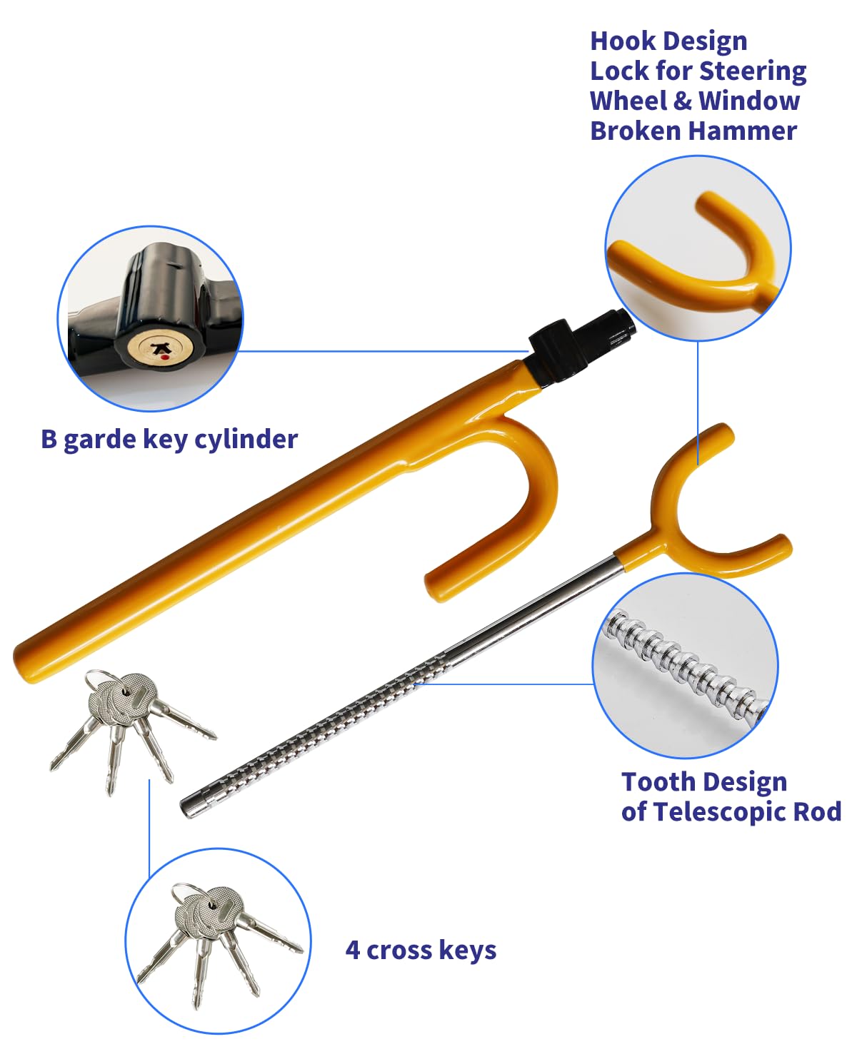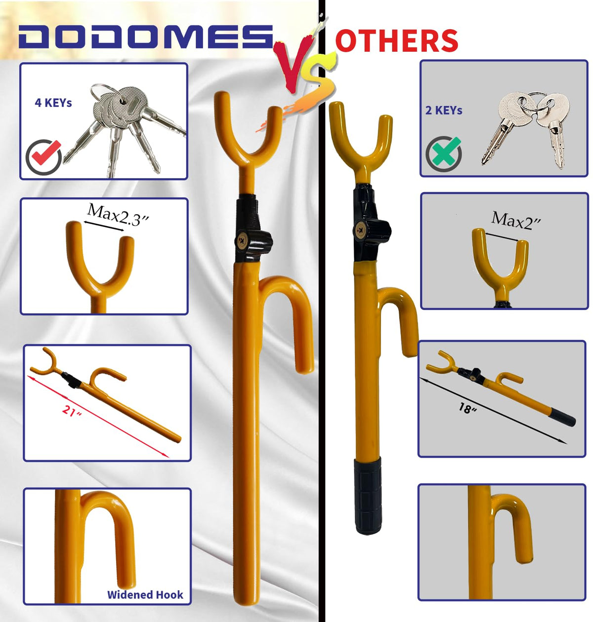 Dodomes Steering Wheel Lock Anti-Theft Car Device Car Wheel Locks Heavy Duty Vehicle Security Steering Wheel Lock For Truck Car Vehicles Van Lorry Suv With 4 Keys, Elongated Length Max 30.5 Yellow