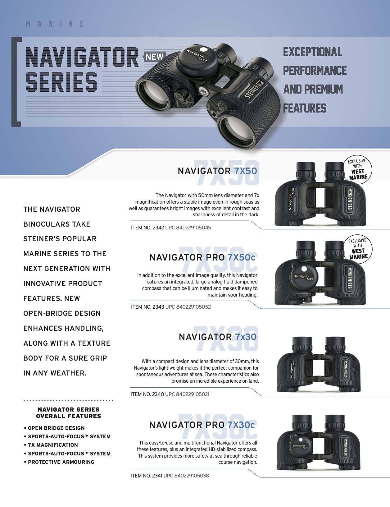 The Navigator Binoculars Take Steiner'S Popular Marine Series To The Next Generationwith Innovative Product Features. New Open-Bridge Design Enhances Handling, Along With A Texture Body For A Sure Grip In Any Weather.