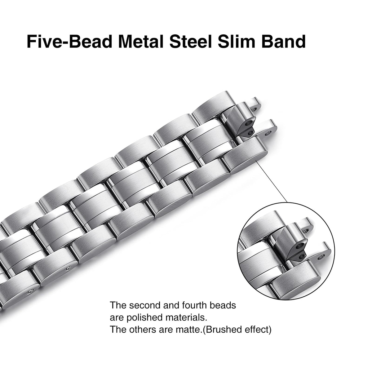 Good Materialthe Smartwatch Wristbands Provide A Smooth Touch. With Exquisite, Noble, Elegant And Sturdy Characteristics. The Matte Material Has A Brushed Effect.Simple Adjustmentthe Operation Is Simple And No Complicated Tools Are Needed. Use A Simple Link Remover To Easily Adjust The Band.Fit Wrist Sizesuitable For Wrists From 5.8 Inches To 8.1 Inches (140Mm-208Mm).No Worry About Losing The Watch In Any Daily Activities. Suitable For All Occasions, Party, Wedding, Holiday, Work, Etc. It Also Can Be A Gift For Mother'S Day, Valentine'S Day, Christmas, Birthday And So On. It Will Be A Stylish Everyday Strap.Fit Smartwatch Type: Compatible With Iwatch Series 10 42 Mm, Series 9 8 7 41 Mm, Series Se Se2 6 5 4 40 Mm, Series 3 2 1 38 Mm. How To Remove The Links Of The Band?Please Be Sure To Follow The Steps Below To Avoid Damaging The Strap! Please Make Sure To Insert The Screw From The Arrowed Side.1. Place The Strap On The Tool, Aligning The Screw Tip Of The Tool With The Pin Hole On The Side Of The Strap.2. Rotate The Screw Of The Tool Gently Until The Pin Of The Strap Is Pushed Out. Then Loosen The Screw Of The Tool In The Opposite Direction To Release The Band.3. Remove The Pin.4. Repeat The Previous Steps.5. Arrange The Watch Chains On The Watch Band And Table Top, Pierce The Pin Gently Into The Hole Of The Links, And Make Sure The Correct End (The Round End) Is Inserted Into The Link Holes.6. Insert Most Of The Pin To Ensure That The Link Does Not Fall Off.7. Place The End Of The Pin On A Hard Surface Or Tool. Then Press Vertically.8.Good Job!Note: 1. Due To The Shooting Angle, The Color Of The Watch Band May Be Slightly Different From The Color Of The Picture. 2. Please Pay Attention To The Size Of The Watch Band When Purchasing.