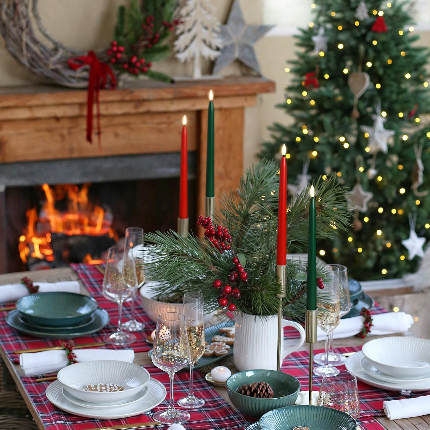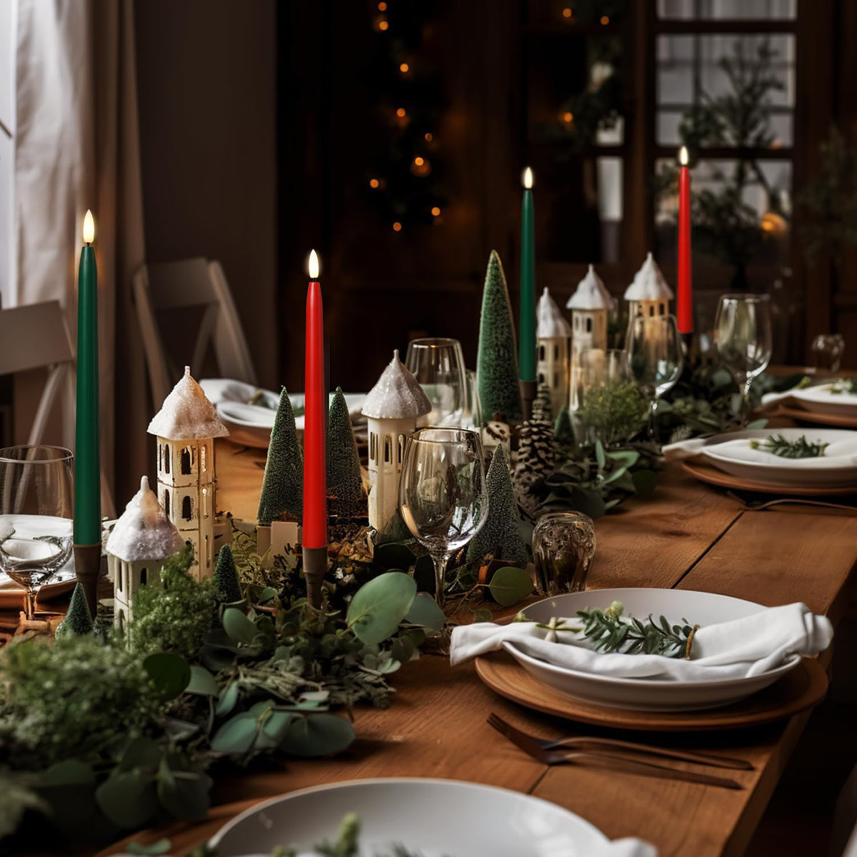 Battery Operated Christmas Taper Candle Set Includes 6 Red And Green Flameless Tapers. Safe Battery Operated Red And Green Candles. Candles Are 11 Inches High And Made Of Durable Plastic. Our Taper Candles Fit Into Virtually Any Taper Candle Holder. Flickering Warm White Led Flame.