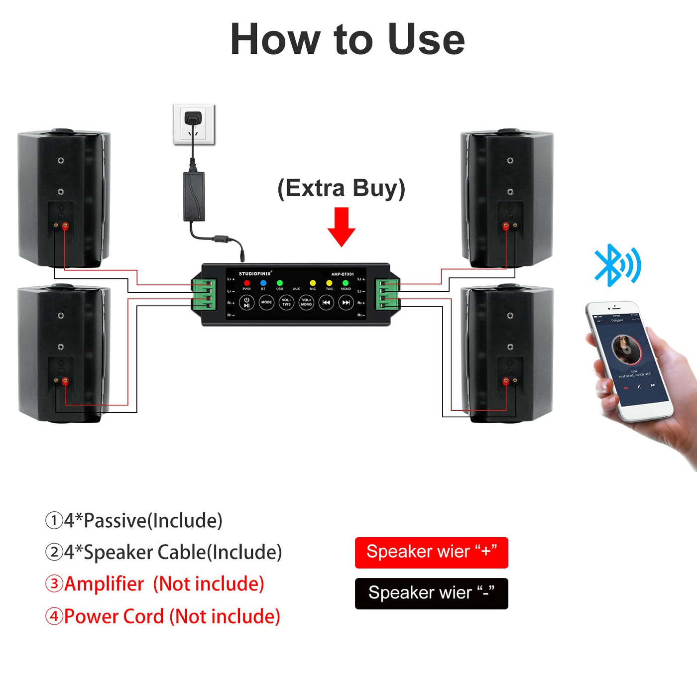 Studiofinix 5.25 Inch 600W Outdoor Speakers Waterproof Wired, Passive Wall Mount Speakers For Patio Garage Home,2 Pairs (Black)
