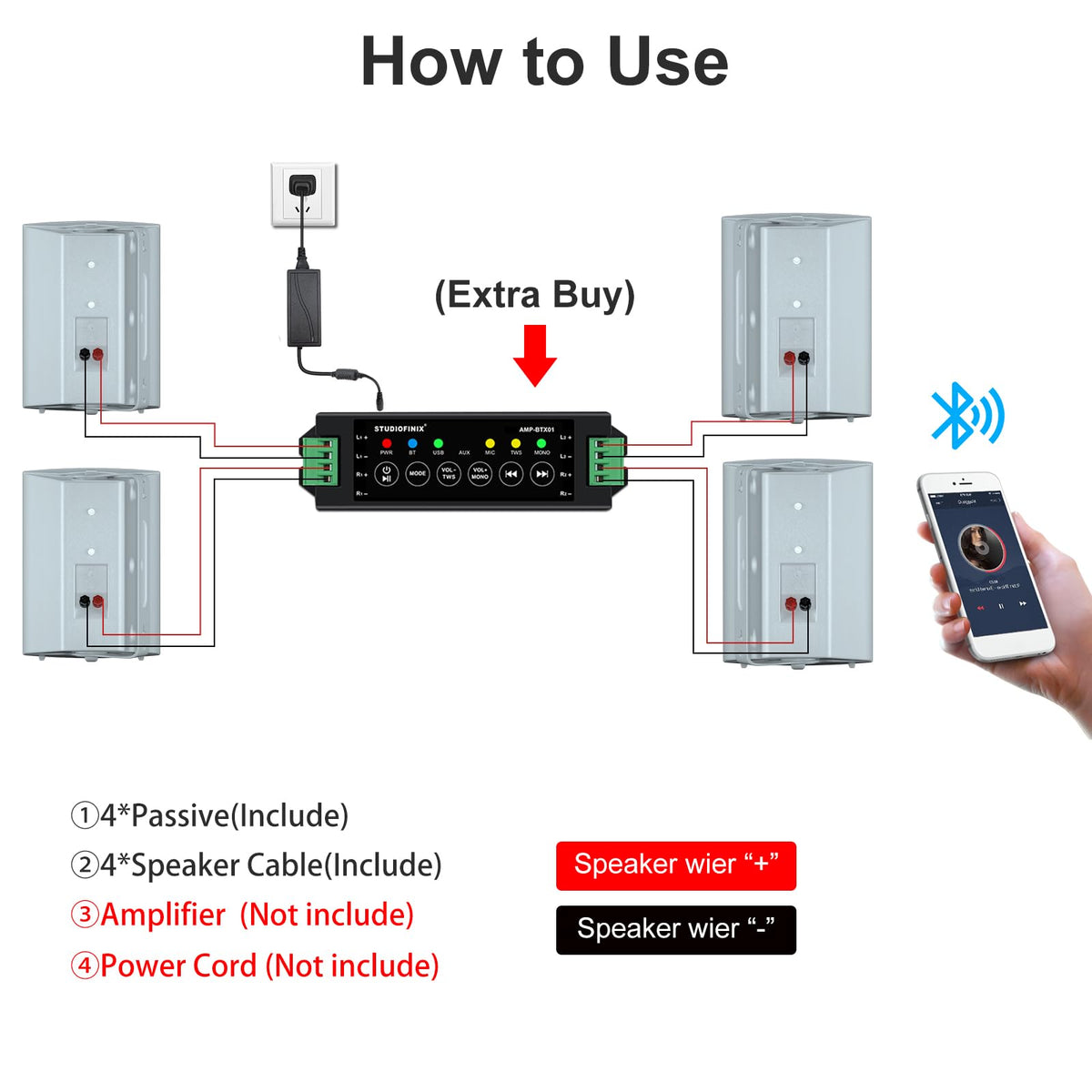Studiofinix 5.25 Inch 600W Outdoor Speakers Waterproof Wired, Passive Wall Mount Speakers For Patio Garage Home,2 Pairs (White)
