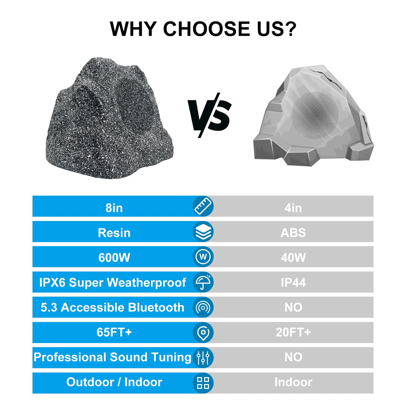 Studiofinix 8'' Outdoor Rock Bluetooth Speakers Waterproof Powerful 600 Watt Deep Bass All Weather Durable For Outdoor Garden Po