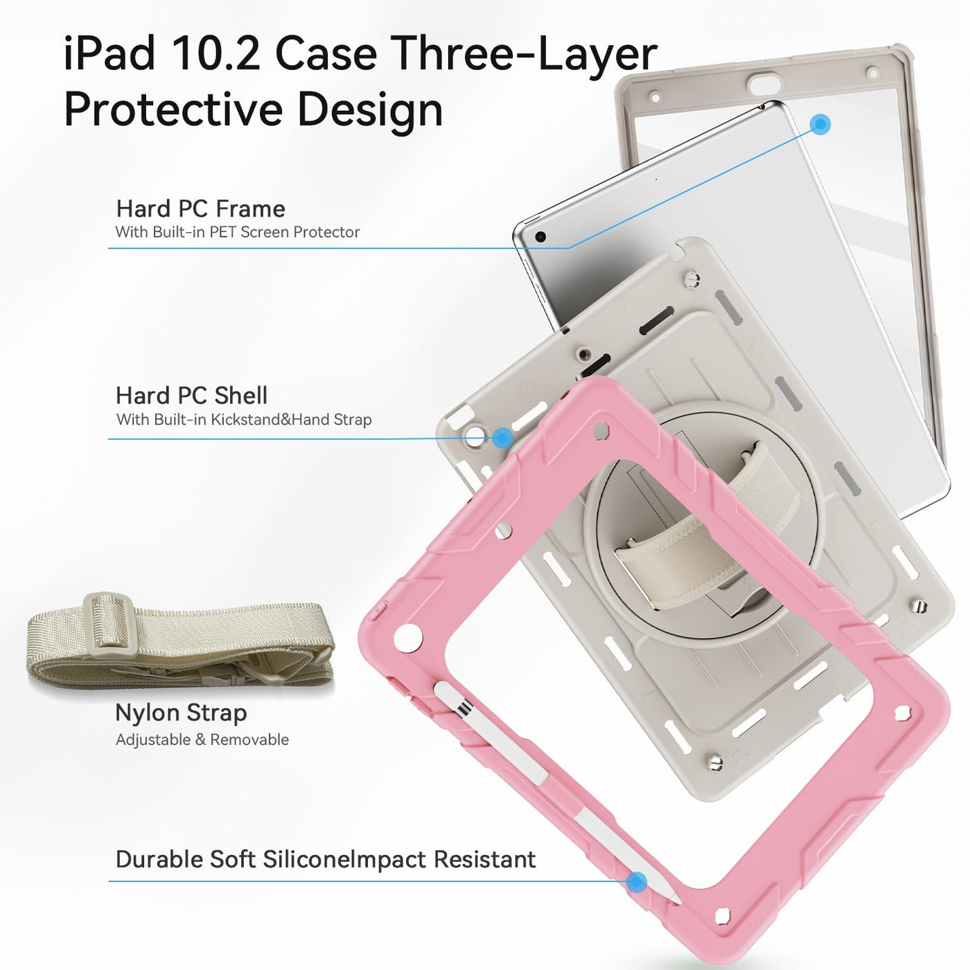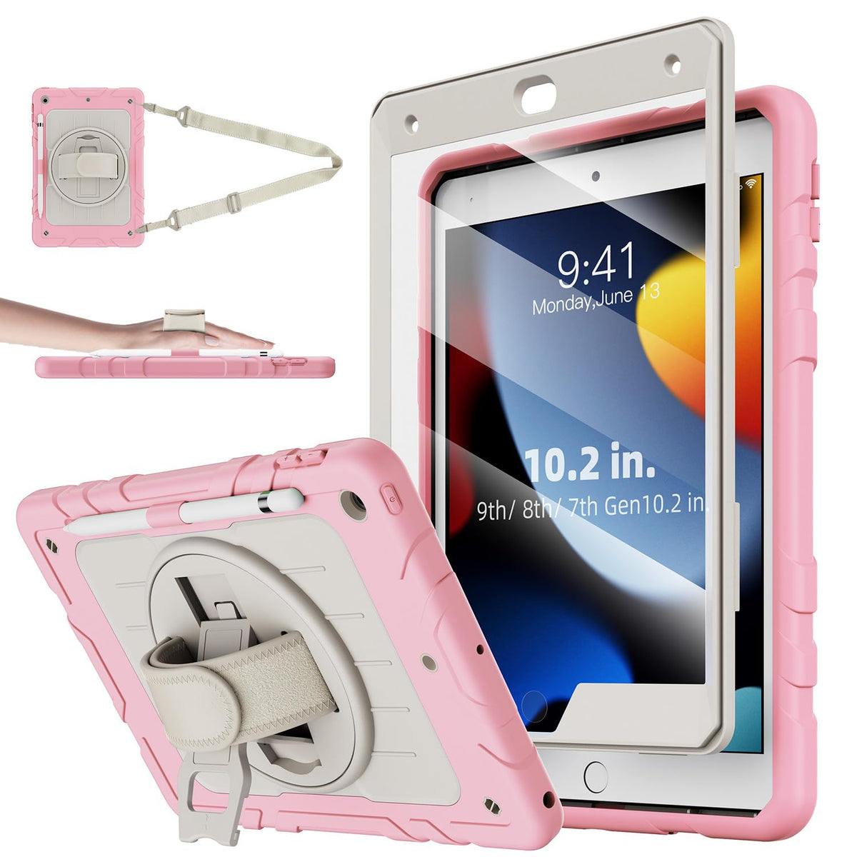 Stweap Case For Ipad 9Th/8Th/7Th Generation-Built-In Screen Protector,With Pencil Holder&360Rotating Hand Strap,Shoulder Strap,C