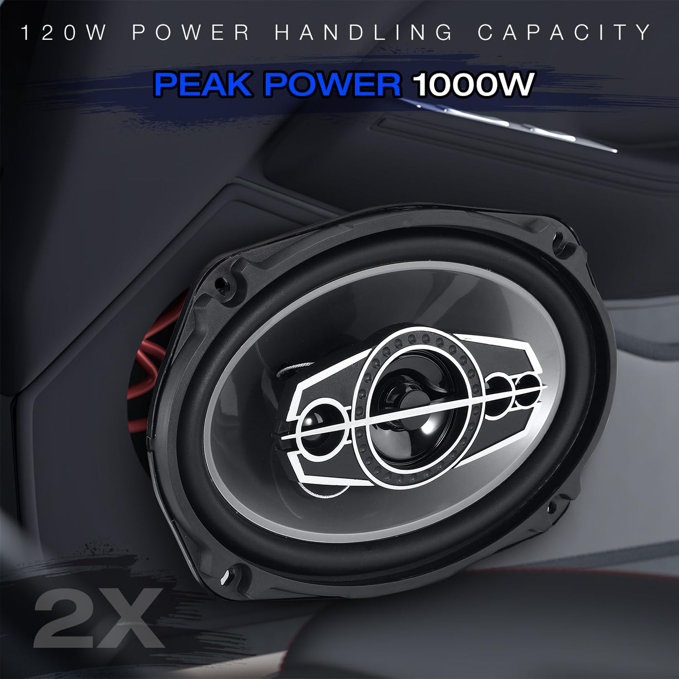 Suacopzar 6 X 9 5 Way Car Coaxial Audio Speakers (Pair), 1000W Peak 4 Ohm Vehicle Coaxial Speaker W/Pei Dome Tweeters, Universal