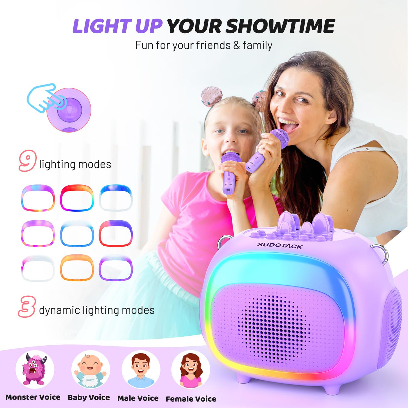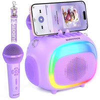 Sudotack Mini Karaoke Machine For Kids, Portable Bluetooth Karaoke Speaker With 2 Wilreless Microphones With Led Lights, Birthda