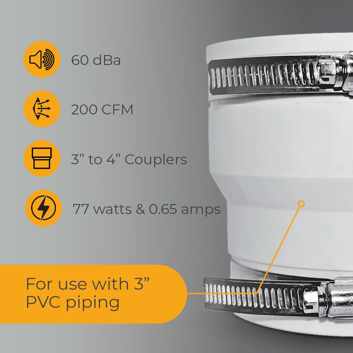 Suncourt Centrax Rdk04 3 Radon Fan Mitigation Kit, Indoor And Outdoor Installation, Inline Centrifugal Fan With Rubber Couplers