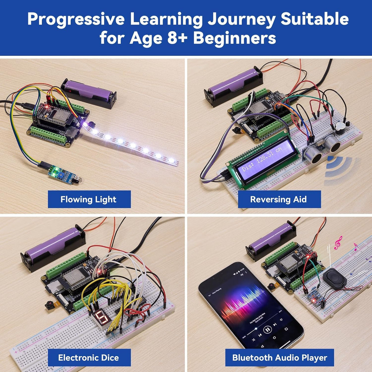 Q: What kind of support is available for users of this kit?A: Users of the SunFounder ESP32 Ultimate Starter Kit have access to comprehensive support, including detailed tutorials, a vibrant online community forum, and dedicated technical support. This ensures you can get help and guidance on your projects whenever needed.