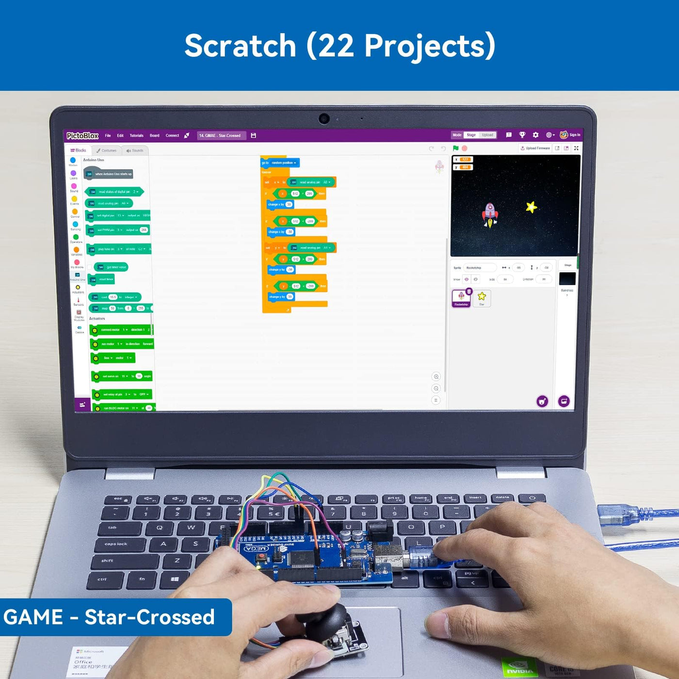 Q: Are there tutorials available for using this kit?A: Yes, the kit comes with 73 tutorials that guide users through various projects, providing detailed instructions and code examples in both Scratch and C language.