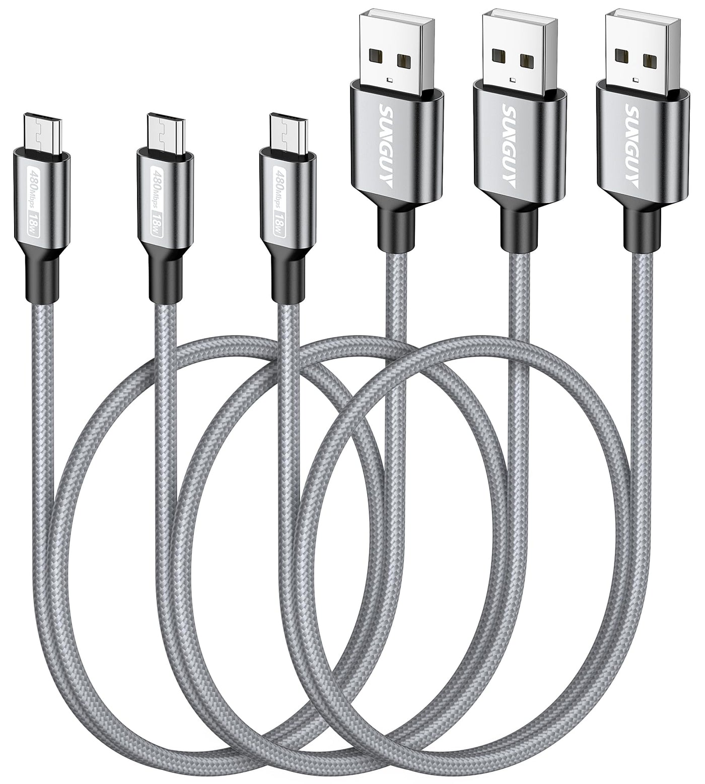 Sunguy Short Micro Usb Cable [3 Pack,1.5Ft], Nylon Braided Usb To Micro Usb 2.0 Fast Charging & Data Sync Cord For Samsung Galax