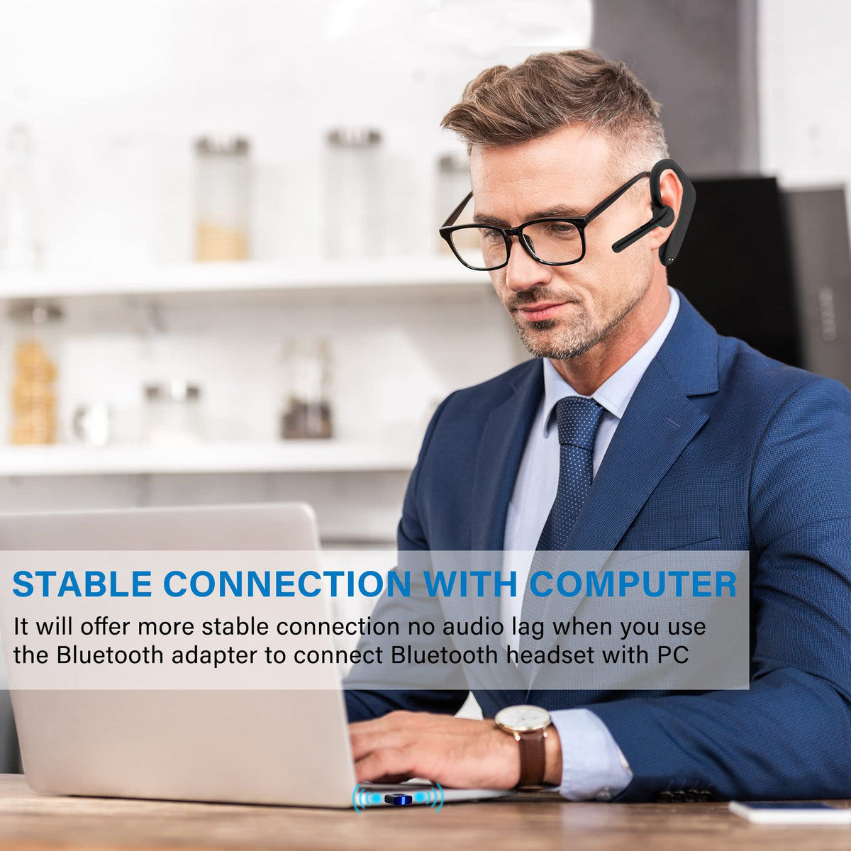 Sunitec Bluetooth Headset,Dual Microphone Wireless Headset With Usb Dongle For Computer, 45H Talking Time,Usb-A Compatible To Co