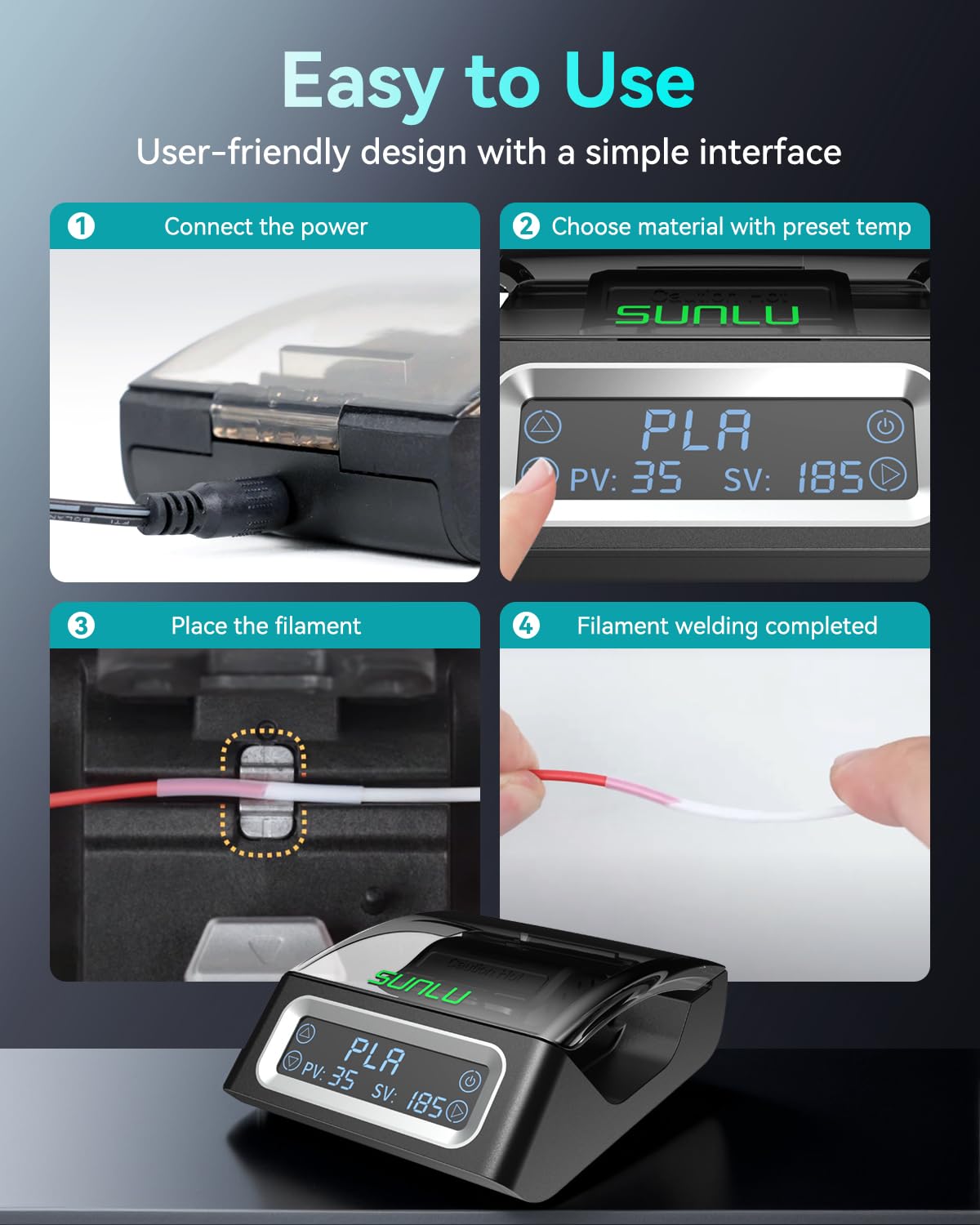 Q: Is the SUNLU Filament Connector easy to use for beginners?A: Yes, the SUNLU Filament Connector features a one-click operation and a built-in display screen, making it user-friendly and suitable for both beginners and experienced users.