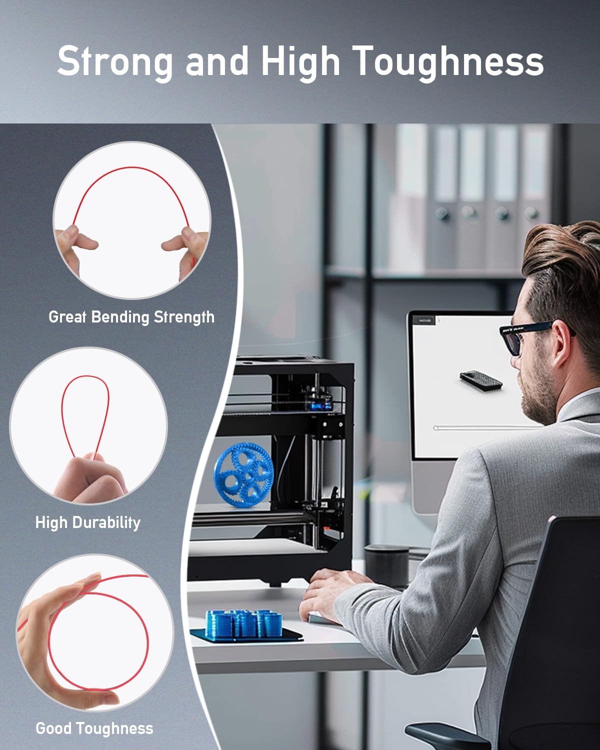 Petg Filament Combines The Advantages Of Both Pla And Abs 3D Printer Filament, Petg Filament Is Easy To Use Like Pla, Durable Strength Like Abs. Recommend Settings Nozzle/Extrusion Temperature: 220-250?; Bed/Platform Temperature Of 75-85?; Printing Speed: 50-100Mm/S; These Settings Are For 0.4Mm Nozzle, It May Be Different With Different Diameters Nozzle. 3 Steps Checking: Why Is The Filament Not Sticking To The Build Bed? Temperature Checking - Please Check The Temperature(Bed And Nozzle) Settings Before Printing And Set It Suitable; Building Bed Checking - Please Check If The Bed Is Level, Make Sure The Nozzle Doesn'T Too Far Or Too Close To The Bed; Speed Checking - Please Check If The Printing Speed Of The First Layer Is Too Fast. Notes Please Insert The Filament Into The Side Holes After Use To Avoid Tangles; Please Store The 3D Printer Filament In A Sealed Bag Or Box After Using It.