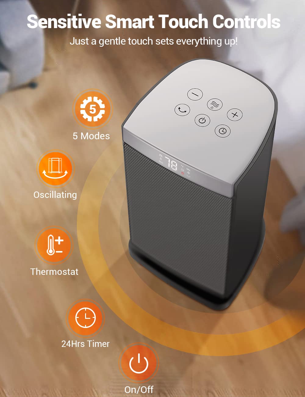 Sunnote Space Heater For Indoor Use, 1500W Fast Heating, Electric & Portable Ceramic Heaters With Thermostat, 5 Modes, 24Hrs Tim