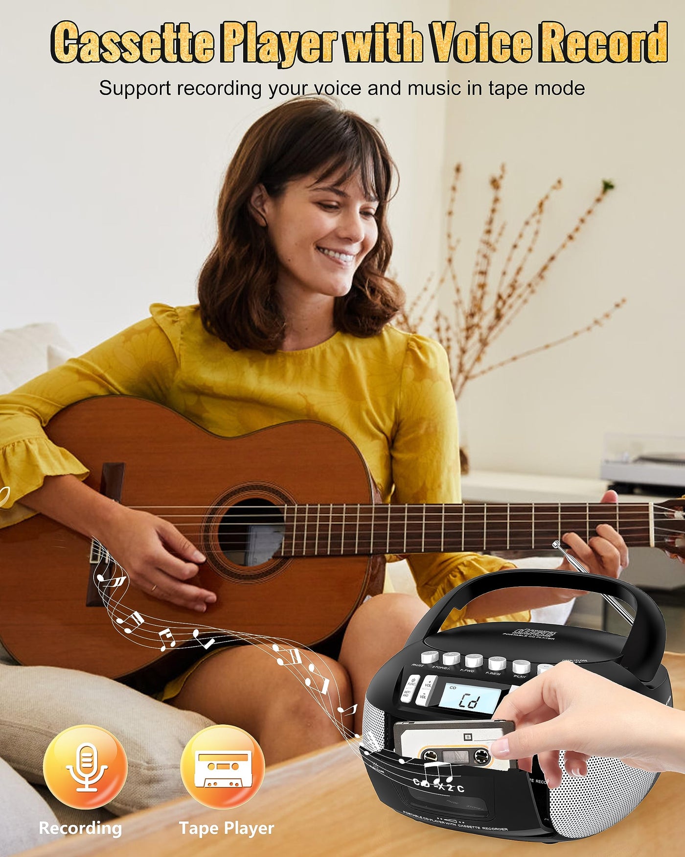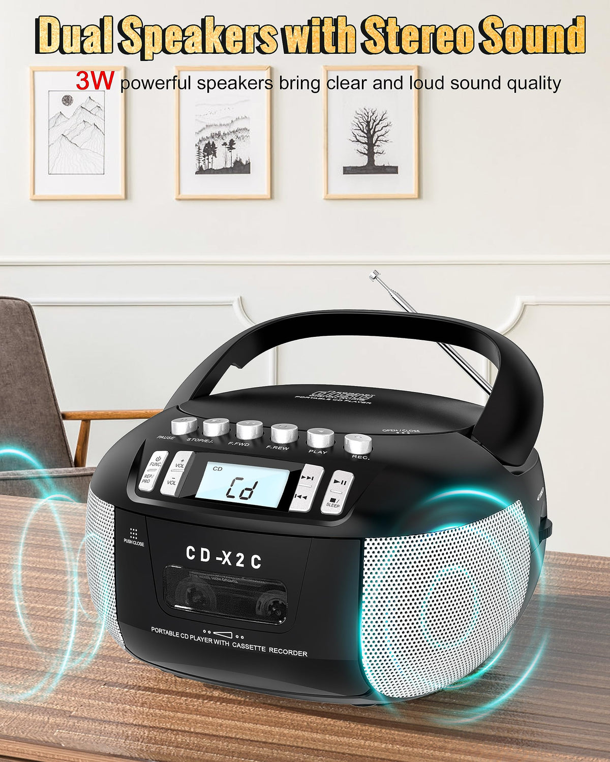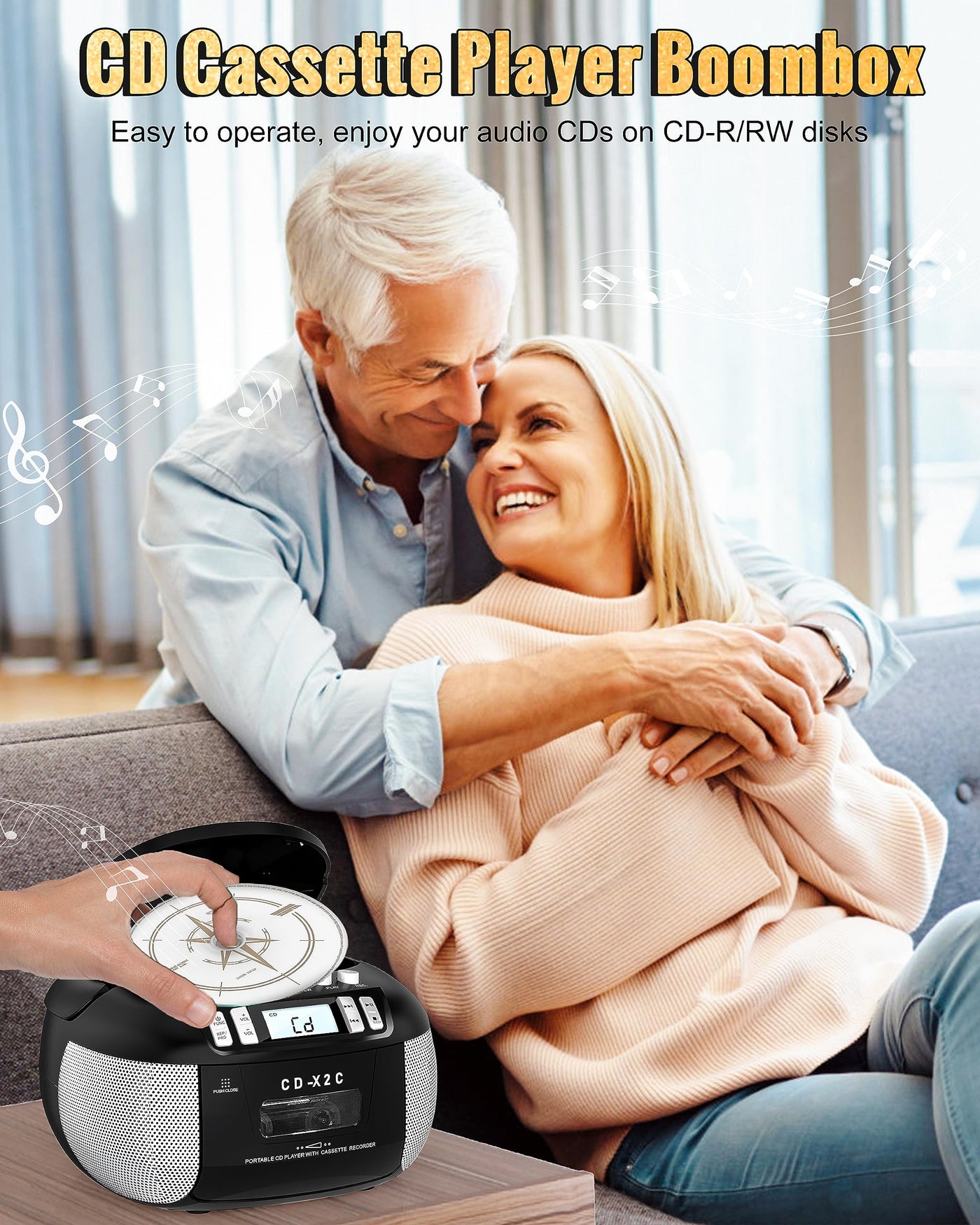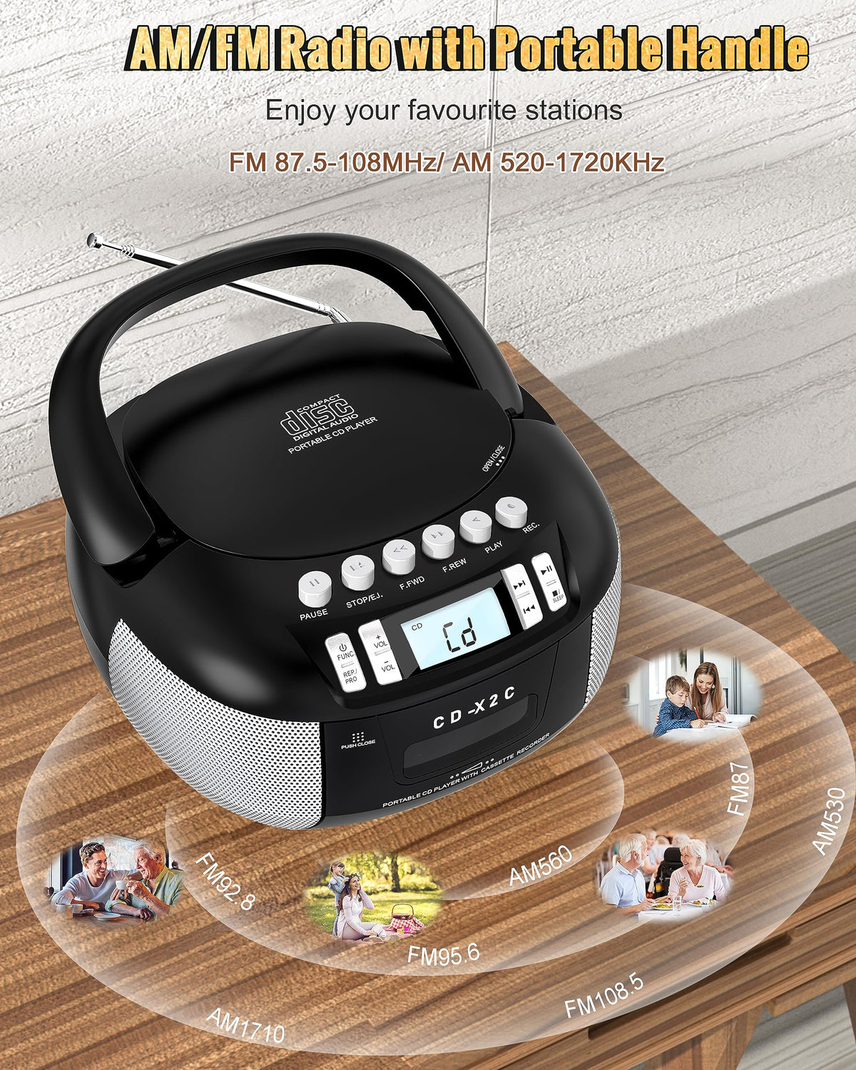 Sunoony Cd And Cassette Player Combo, Boombox Cd Player Portable With Am/Fm Radio, Tape Recording, Stereo Sound, Ac/Dc Powered,