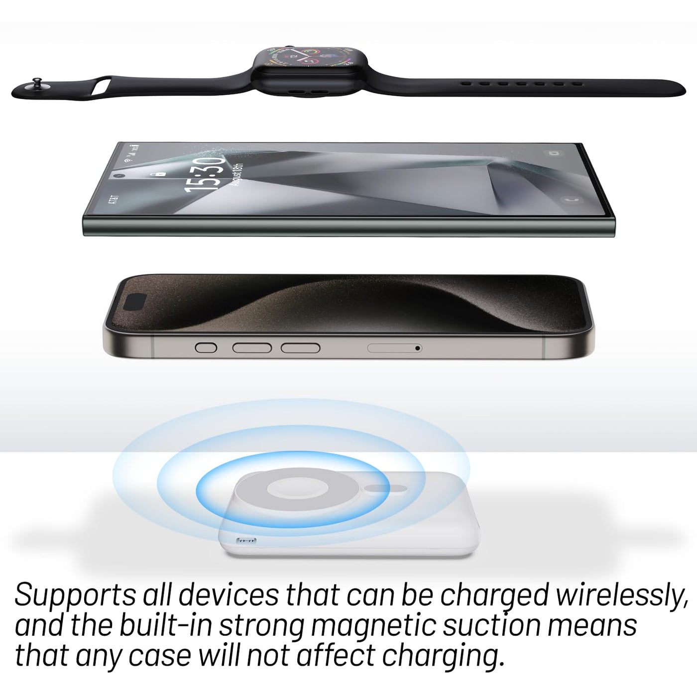 Q: What devices are compatible with the sunpolin Portable Charger?A: The sunpolin Portable Charger is compatible with a wide range of devices including iPhones (12-15 series), Samsung smartphones, Android devices, Apple Watch, and AirPods. Its universal compatibility makes it an ideal choice for various users.