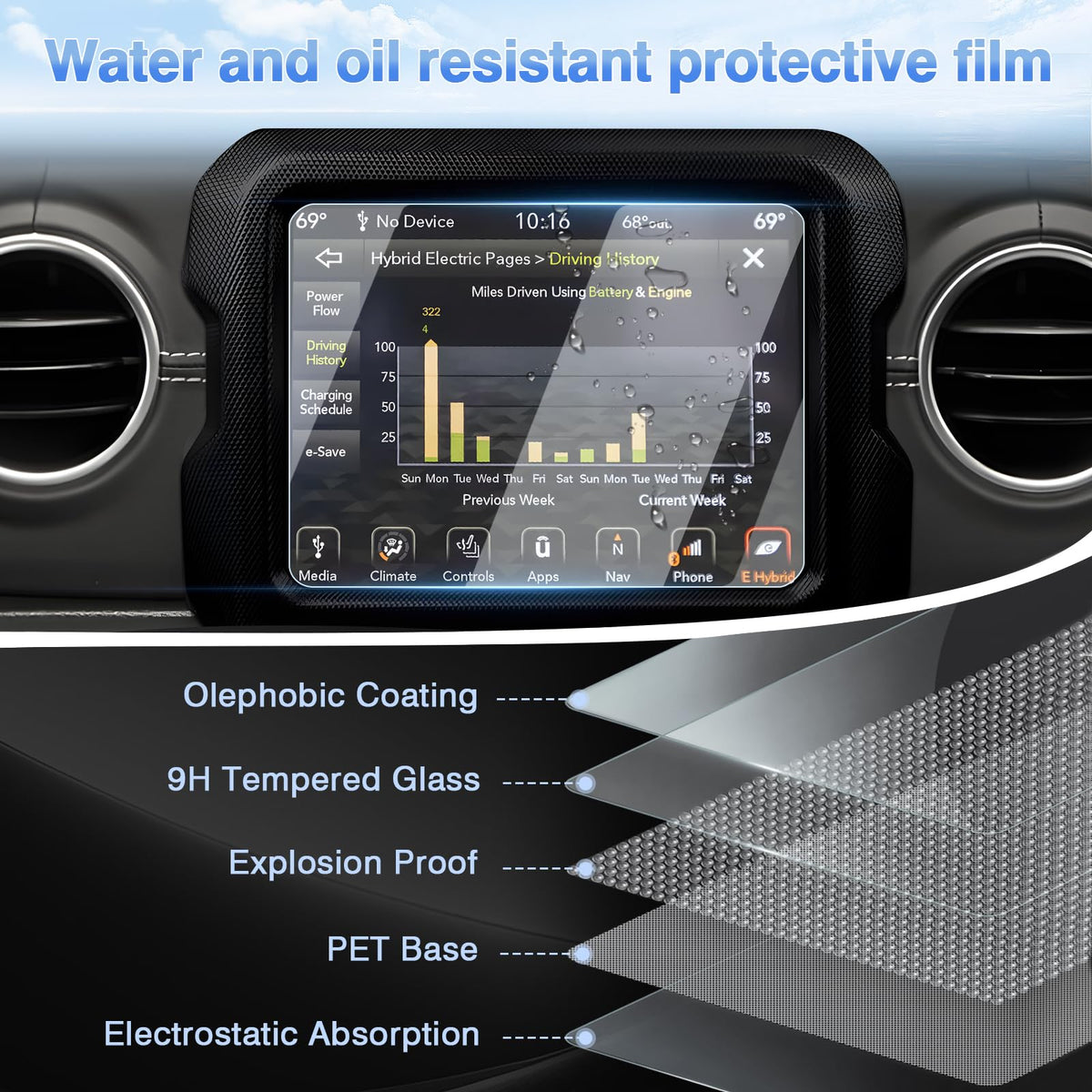 Sunsdrew 2Pcs Screen Protector For 2018 2022 Jeep Wrangler Jl/2020 2022 Gladiator Jt 8.4' Dashboard Touch Screen Radio Display Protector 9H Tempered Glass Protective Film Anti Glare