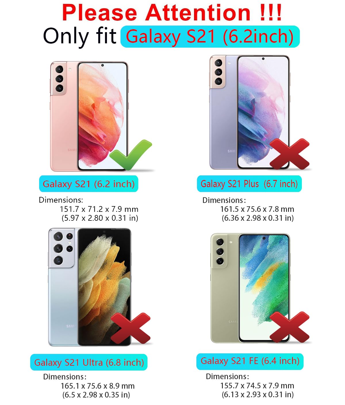 Q: Is the SunStory case compatible with other Samsung Galaxy models?A: The SunStory case is specifically designed for the Samsung Galaxy S21 5G and is not compatible with the Galaxy S21 Ultra 5G or Galaxy S21 Plus 5G models. Please ensure you have the correct model for a perfect fit.