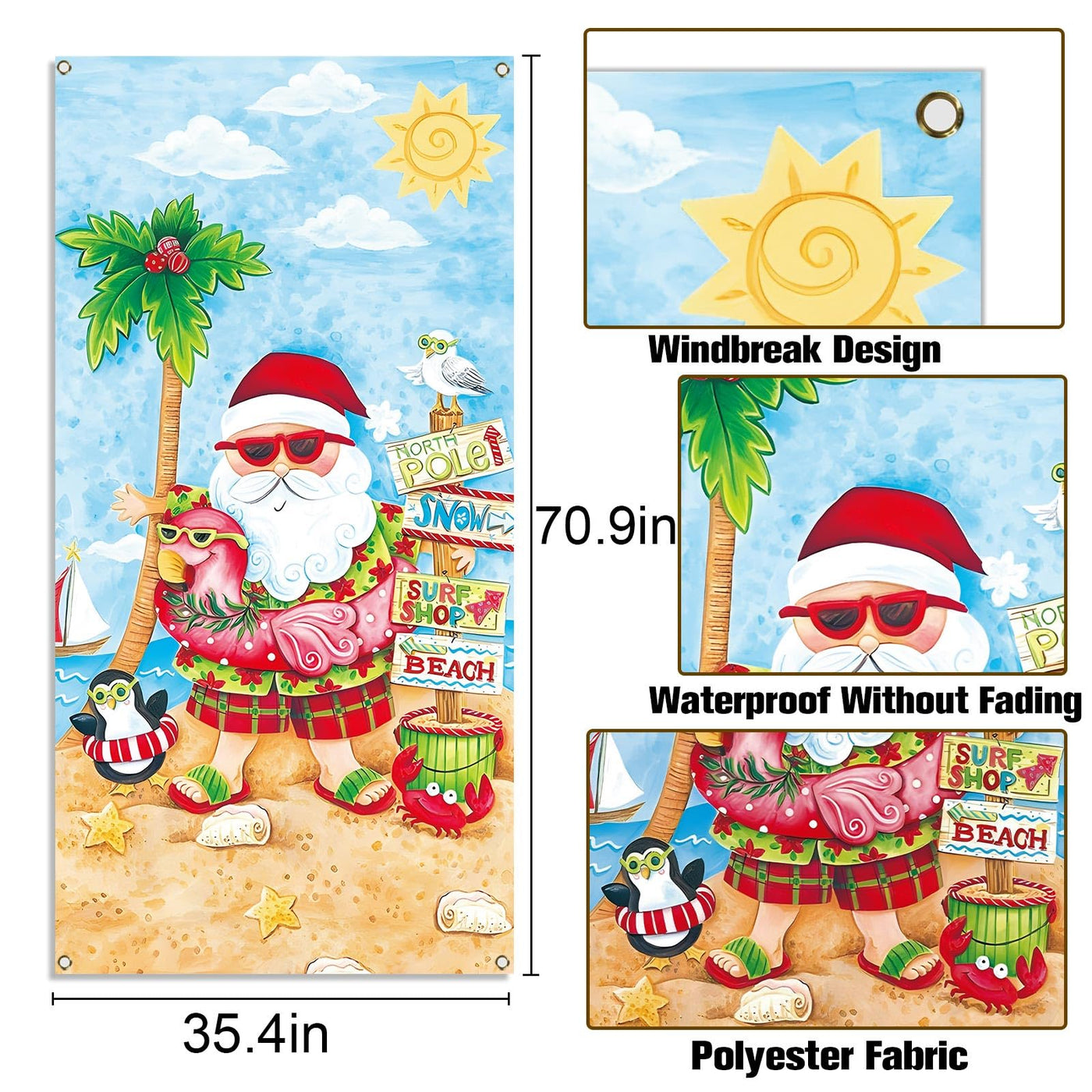 Sunwer Christmas July Door Cover Tropical Summer Beach Hawaiian Themed Party Decoration Santa Palm Tree Front Porch Sign Backdro