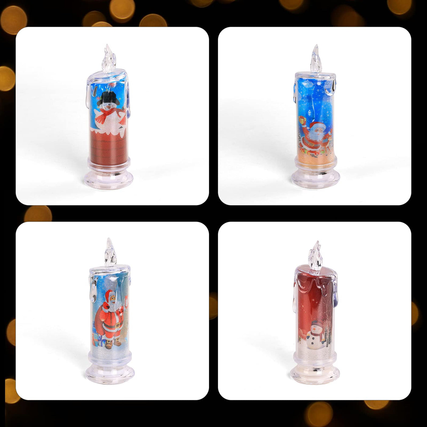 Supbri Christmas Flameless Candles With Santa Claus, Snowman,Decals Set Of 4, Battery Operated Christmas Themed Led Candles For