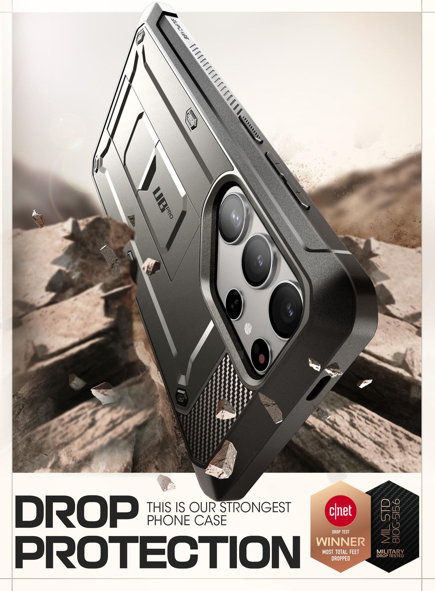 Q: What kind of protection does the SUPCASE Unicorn Beetle Pro Case provide against drops?A: The SUPCASE Unicorn Beetle Pro Case offers exceptional drop protection with its multi-layered TPU and Polycarbonate construction, which has been tested to withstand drops from heights of up to 20 feet, ensuring your Samsung Galaxy S24 Ultra remains safe and secure.