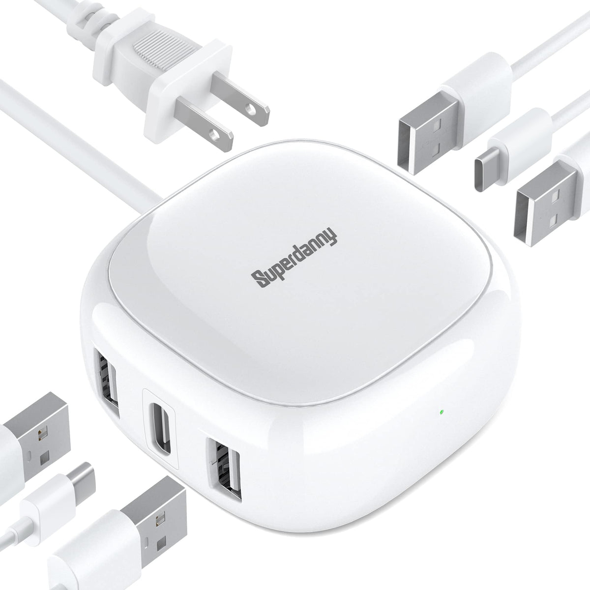 Superdanny 6 Port Usb Charger, 40W 8A Mini Usb Charging Station, Charging Station For Multiple Devices, 4Ft Cable, Compatible With Iphone, Ipad, Galaxy, Pixel, For Travel, Cruise, White