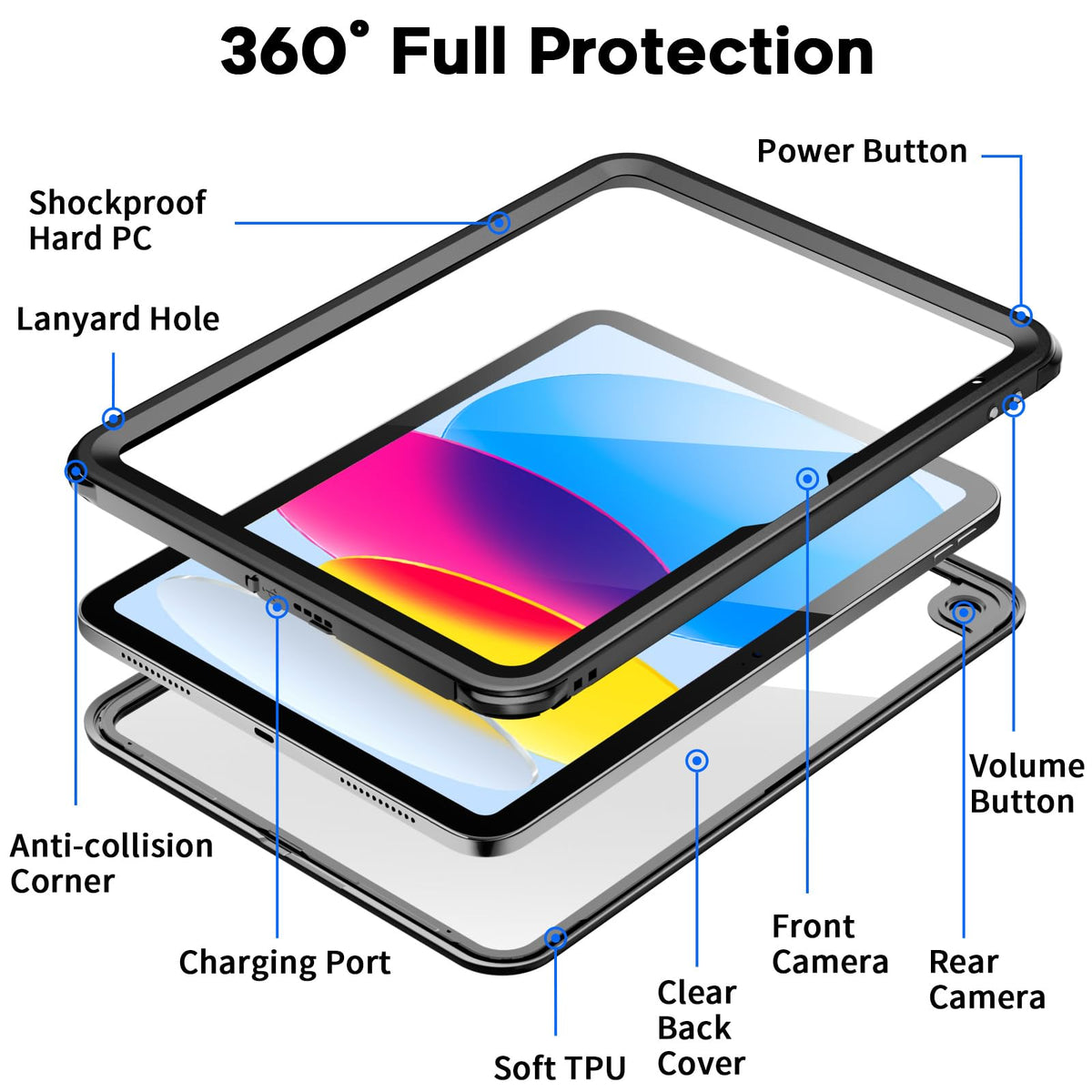 Supfine For Waterproof Ipad 10Th Generation Case, [Built In Screen Protector] [Ip68 Waterproof] Full Body Rugged Shockproof Prot