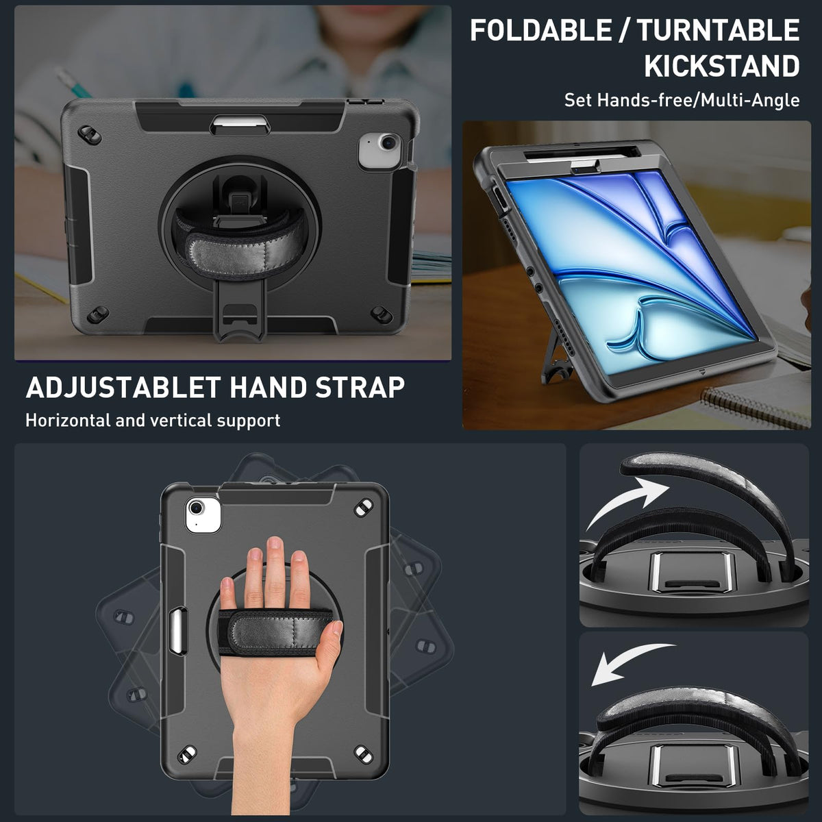 [Compatibility]Designed For Ipad Air 11 Inch 6Th Generation Case 2024 (Model: A2902/A2903/A2904).Ipad Air 10.9 Inch Air 5 2022, Ipad Air 10.9 Inch Air 4 2020 (Model Number:A2588/A2589/A2591/A2072/A2316/A2324/A2325 )Not For Other Models,Please Check The Ipad Model Before Purchasing.[Material]Supfives Ipad Air 11 Inch 6Th Generation Case 2024 Is Made Of Pc+Tpu.Designed To Withstand Military-Grade Drop Tests, Ipad Air 11 Inch Case Ensures Maximum Safeguarding Against Accidental Drops And Impacts. Additionally, Featuring An Integrated Screen Protector, It Offers Comprehensive Defense Against Scratches And Daily Wear-And-Tear. Keep Your Ipad Air 11 Safe And Secure With Supfives Premium-Quality Protective Cover![Shoulder & Hand Strap]Supfives Ipad Air 11 Inch Case Comes With A Shoulder Strap For Hands-Free Outdoor Activities,It Allows You To Comfortably Carry Your Device While On The Go, Freeing Up Your Hands For Effortless Movement.Also Equipped With A Hand Strap Feature That Ensures A Secure Grip To Prevent Accidental Slips During Ipad Usage.Stay Connected And Protected Wherever You Go With This Versatile Case Designed For Active Lifestyles.[Kickstand & Pencil Holder]Supfives Ipad Air 11-Inch 6Th Generation Case With A Rotating Stand That Offers Multiple Viewing Angles, Allowing You To Free Up Your Hands For Studying, Working, Or Enjoying Your Favorite Shows. Also Built-In An Apple Pencil Slot, Storing And Retrieving Your Stylus Is Simple And Secure - Say Goodbye To The Frustration Of Misplacing Or Losing Your Apple Pencil.[Perfect Fit & Warranty]:Supfives Ipad Air 11 6Th Gen M2 Case Allows Easy Access To All Buttons, The Precise Cutouts And Design Easily Access To All Buttons (Speakers, Volume Button, Charging Port, Camera).If You Have Any Questions, Please Feel Free To Contact Us, Supfives 7*24 Hours Online!365-Day Warranty On Any Supfives Product!!