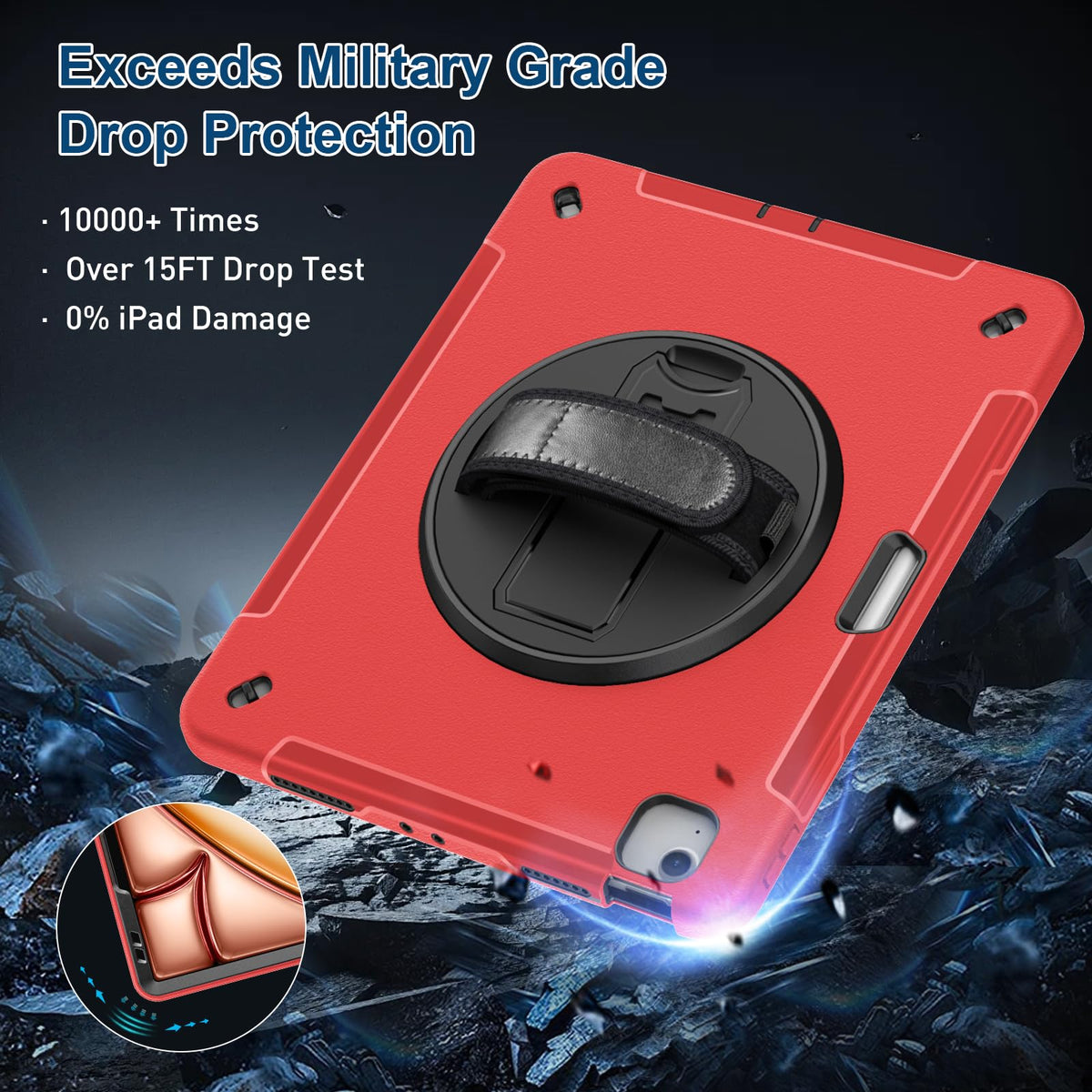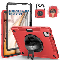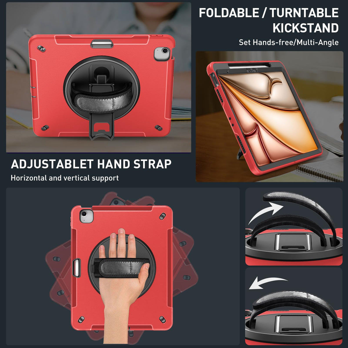 Supfives Case For Ipad Air 13 Inch 2024,With Screen Protector+Hand Strap+Shoulder Strap+Rotating Kickstand+Pencil Holder,Red