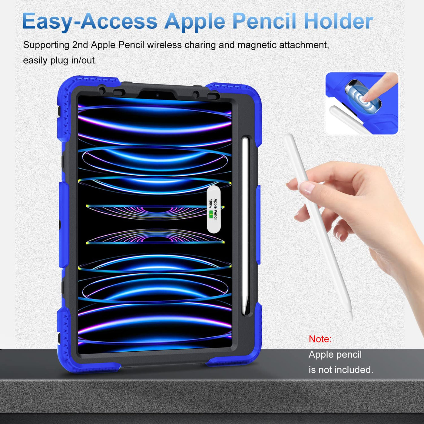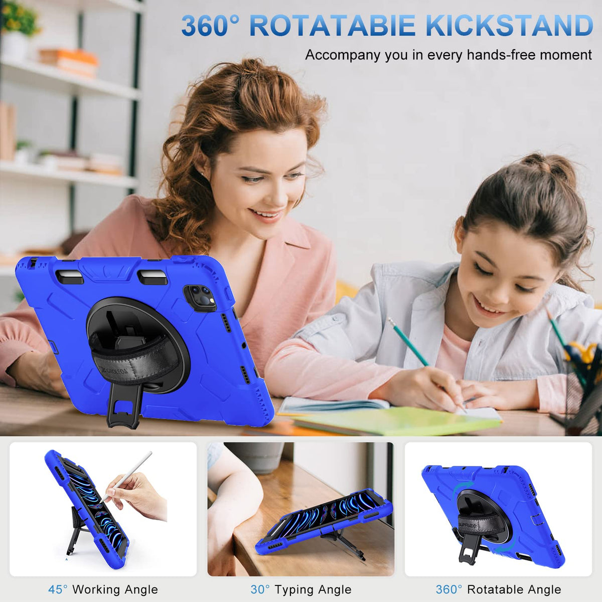 Compatible With Ipad Pro 11 Case 2022 4Th Generation (Model Number: A2759/A2435/A2761/A2762) Ipad Pro 11 Case 2021 3Rd Generation (Model Number: A2316/A2324/A2325/A2072), Ipad 11 2020 Released 2Nd Generation And Ipad 11 Inch 2018 Released 1St Generation . 2. Build In Apple Pencil Holder Supports 2Nd Generation Apple Pencil Magnetically Charging And Pairing Without Removing The Case. 3. Portable Shoulder Strap Keeps Your Tablet Secure And Accessible At All Times. The Perfect Solution For Sports Fans, Concert Goers, Teachers, Students, Hikers, Seniors, Travelers Or Any Others. 4. Adjustable Self Adhesive Handheld Holster Designed With Anti-Slip Matte Surface Offers A Comfortable Secure Grip, Fitting Any Hand Size. 5. Premium Shockproof Design Combines A Hard Pc Front Cover, Polycarbonate Inner Shell And Flexible Silicone Frame Skin And Provides Great Protection For Daily Use. 6. Rotating Built-In Stands Make The Ipad Stand Securely At Different Angles On A Table. Free Your Hands. 7. Precise Cutouts Design Allow Full Access To All Features, Buttons, Speakers, Cameras. 8. The Dust Caps Keep Out The Dust And Debris.&Nbsp; 9.&Nbsp;The Raised Edges Can Protect Both The Camera And Screen. 10. Your Satisfaction Is Our Mission. If You Need Help, Please Let Us Know.