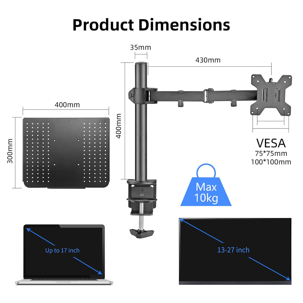 Suptek Single Laptop Notebook Desk Mount With Tray For 13 27 Inch Computer Screen, Fully Adjustable Laptop Desk Arm For Laptop N
