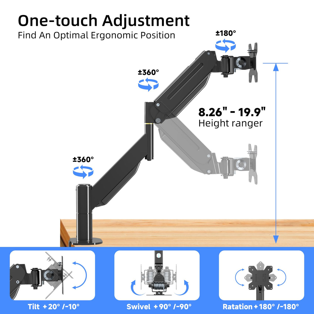 Suptek Ultrawide Monitor Arm Desk Mount, Heavy Duty Monitor Arm For Ultrawide Monitors Up To 49 Inches And 46.2 Lbs, Single Desk Mount Stand, Pneumatic Height,C-Clamp And Grommet Desk Mount Md71L