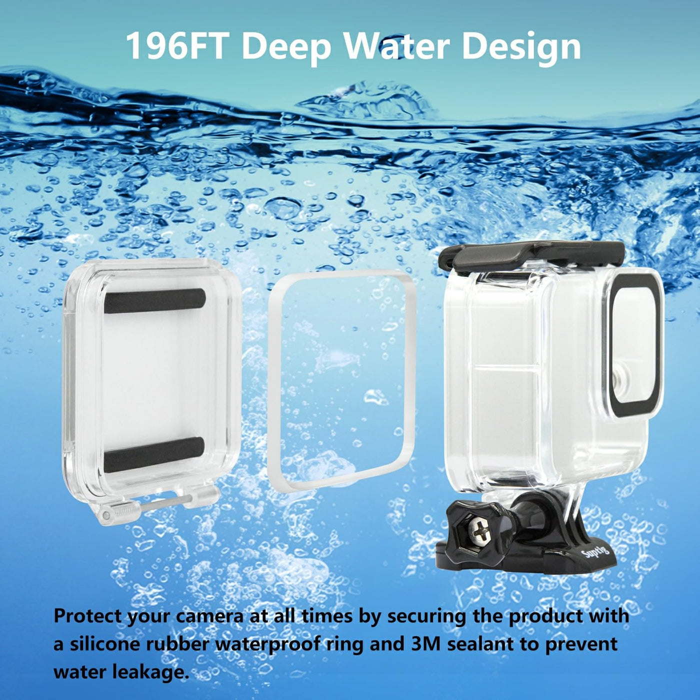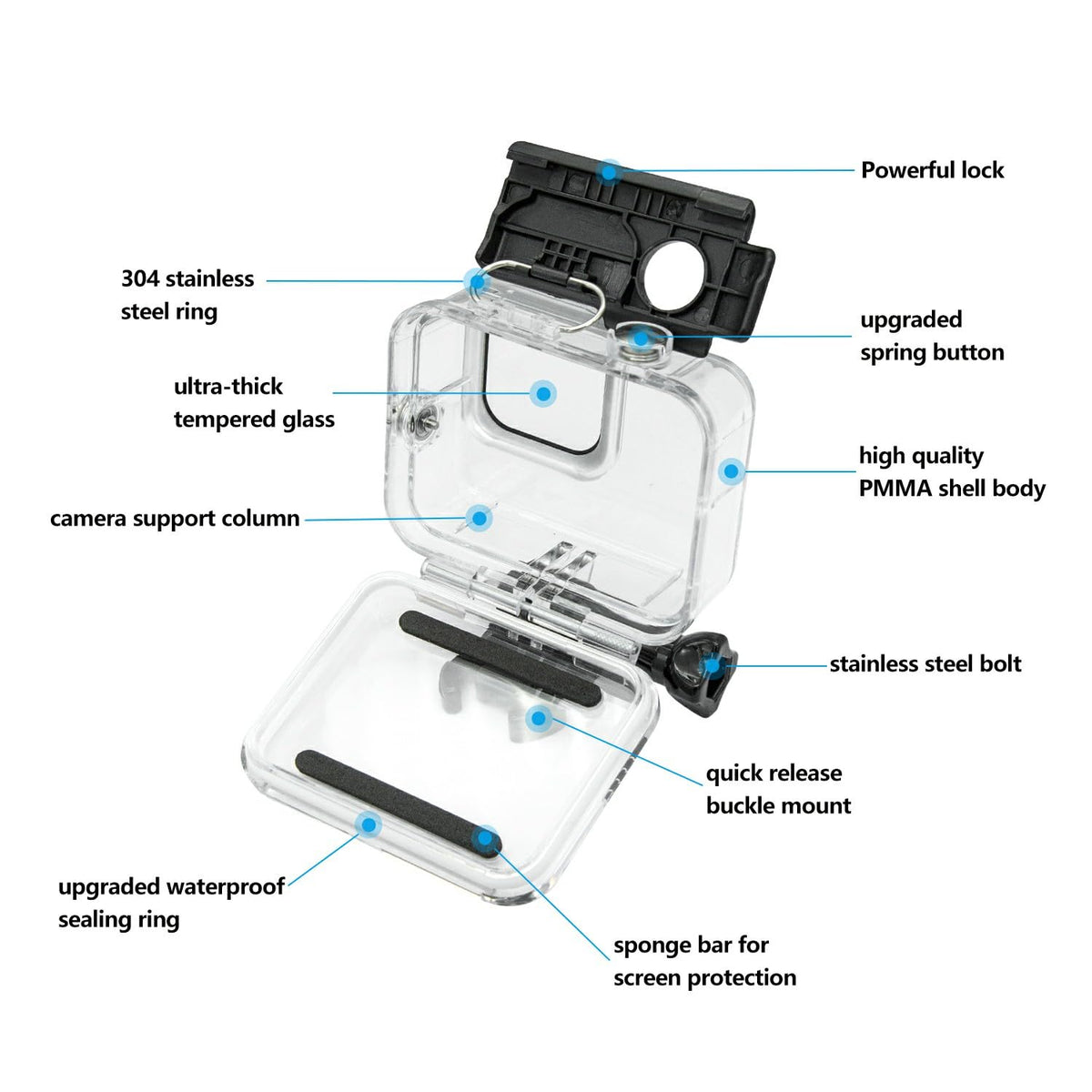 Compatible: For Gopro Hero 8 Blackwaterproof Protection Suptig Waterproof Case Can Waterproof 196Ft(60M), For Deep Sea Diving, Surfing, Swimming, Water Sports.Material:Plastic Materials: Durability, Transparency Pc Material Productionhardware Part Material: Made Of Stainless Steel, No Worry About Rust After Use In The Sealens Material: Made Of Tempered Glass, Dust-Proof And Scratch-Resistant, The Photos Will Be Clearer.Specifications:Type: 196Ft(60 Meters) Dive Housingmaterial: Pc+Stainless Steel+Tempered Glassdimension: 3.34 X 1.57 X 3.54 Inweight: 0.21Lbpacking List:1X Waterproof Housing1X Quick Release Mount1X Thumbscrew1X Microfiber Cleaning Cloth